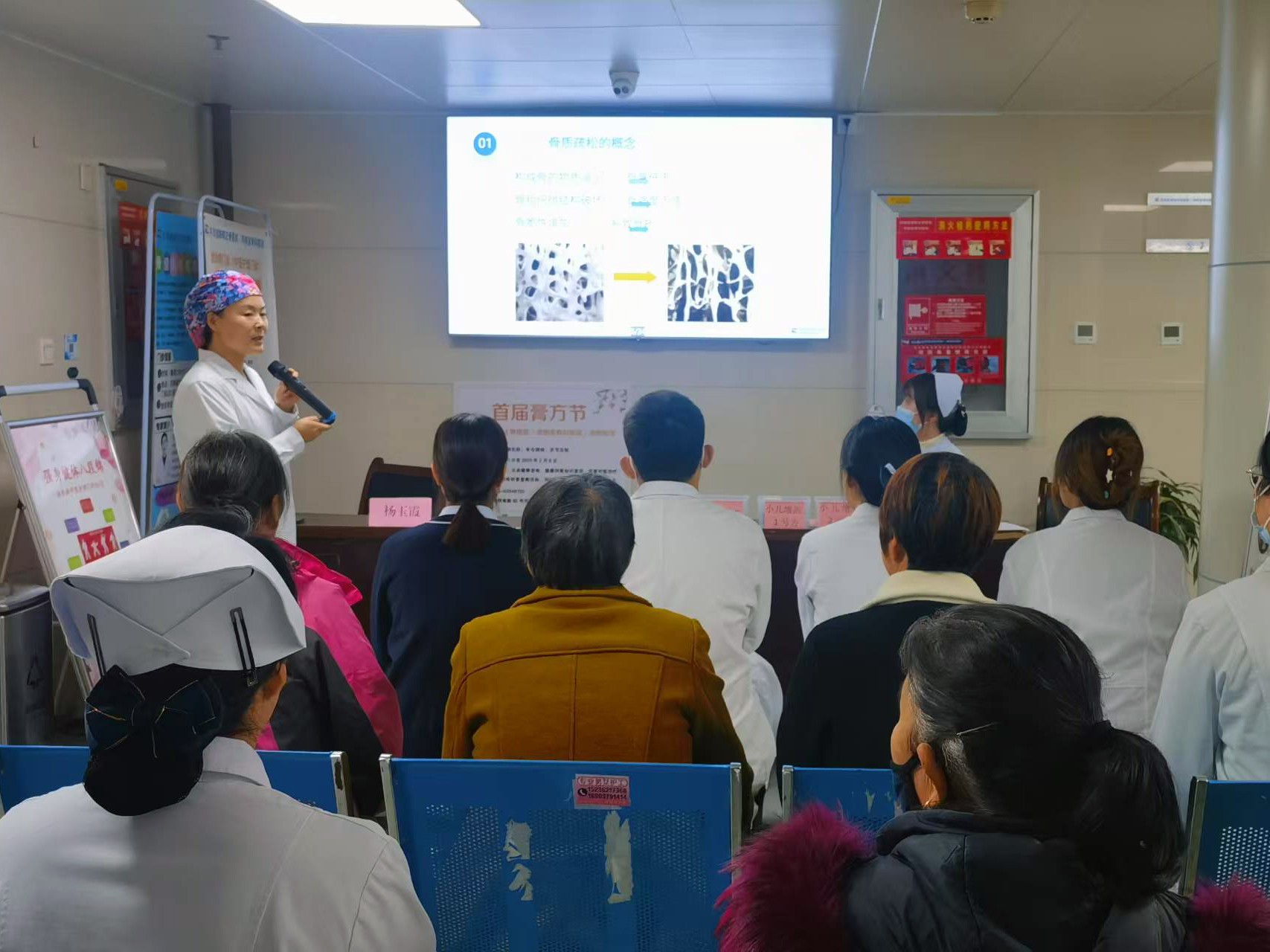 杨玉霞护士长现场讲解了老年骨质疏松发生原因以及老年骨折的预防和应对措施。治未病门诊(中医护理门诊)主任黄满玉现场进行中药膏方临床使用指导。中医护理门诊两位专家护士长赵爱琴、王桂芝为现场群众和医护人员进行有奖知识问答和疑难解惑。段丽娟、张雅晴、南晓静等介绍中医特色治疗项目及科室参观。