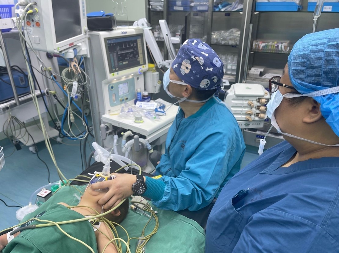 Costello综合征(CSTLO)是一种罕见的常染色体显性遗传病,表现为身材矮小、严重的喂养困难和生长发育迟滞等症状。患儿3岁,自出生后全身发育迟缓,言语不利,至今无法站立行走,因疾病罕见及麻醉手术操作风险等原因,辗转省内多家三甲医院均未能手术矫治。两周前,家属带患儿来到我院,矫形骨一科主任朱明海、主诊医师张智会诊后,认为患儿可以通过手术治疗改善当前残障,利于学步锻炼。考虑costello综合征合并心脏、颅脑、胸腹腔等多发疾患,麻醉难度较高,术前,矫形骨一科团队积极联系麻醉科会诊,手术当日由麻醉科主诊医师牛黎利排除相关风险后主持无插管全麻,矫形骨一科李刚博士主刀、杨思敏医生配合,历时1小时顺利完成双侧下肢手术。
