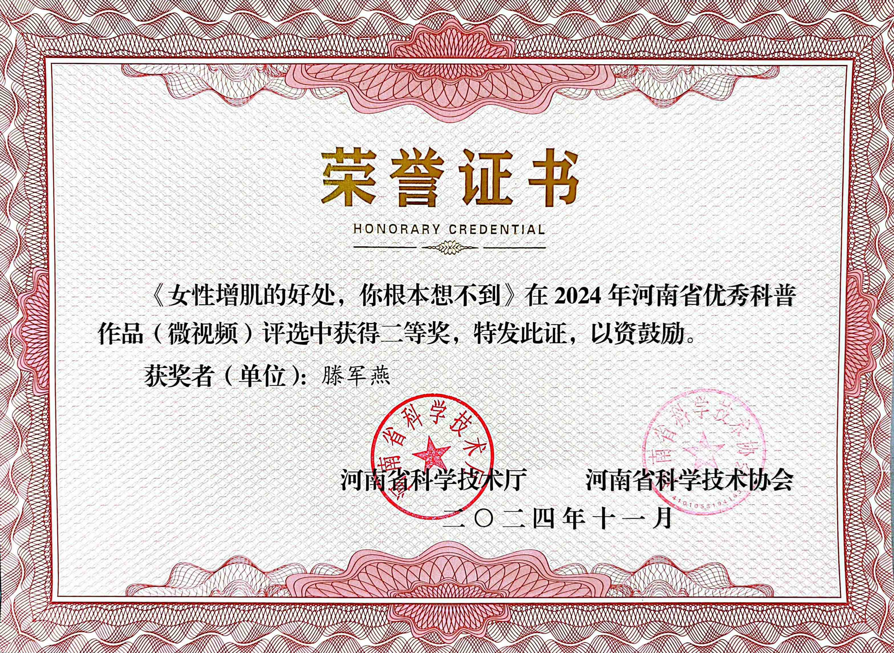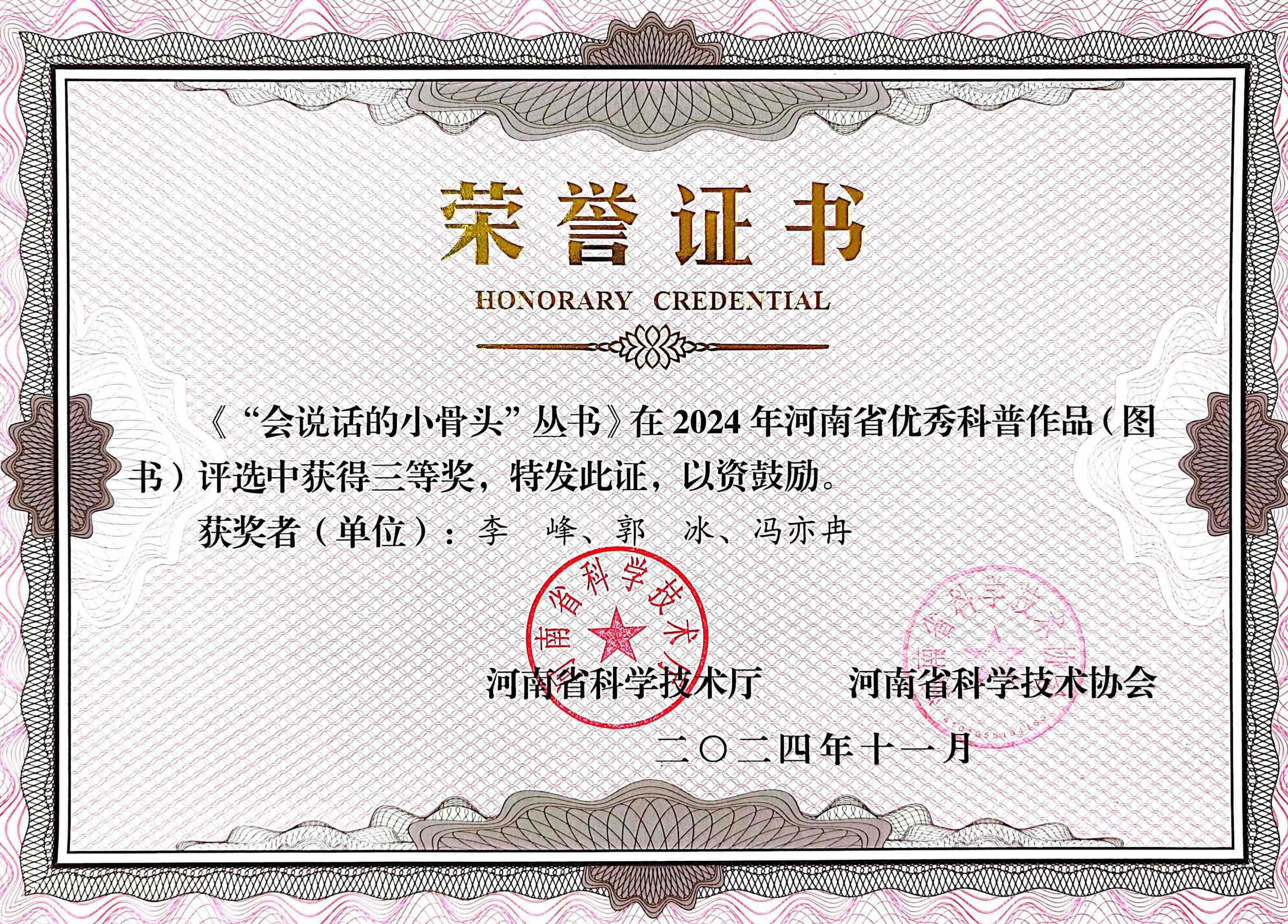 为深入实施创新驱动、科教兴省、人才强省战略,在全社会弘扬科学精神、普及科学知识,推动全社会科学文化素养提升,近日,由河南省科学技术厅、河南省科学技术协会面向全省组织开展了2024年河南省优秀科普作品征集和评选活动。经个人申请、单位推荐、专家评审、集中公示等程序,评选出各类获奖作品。