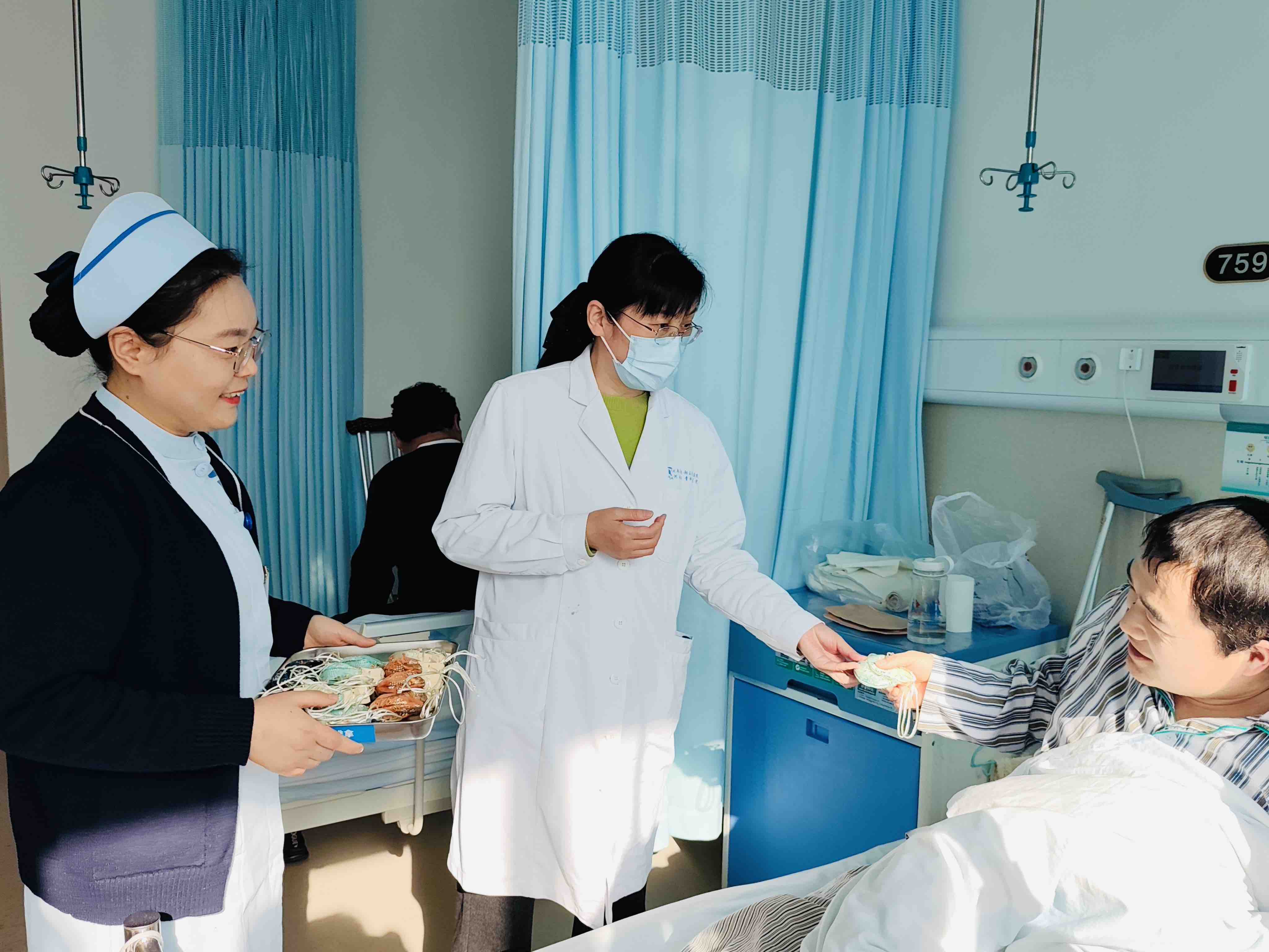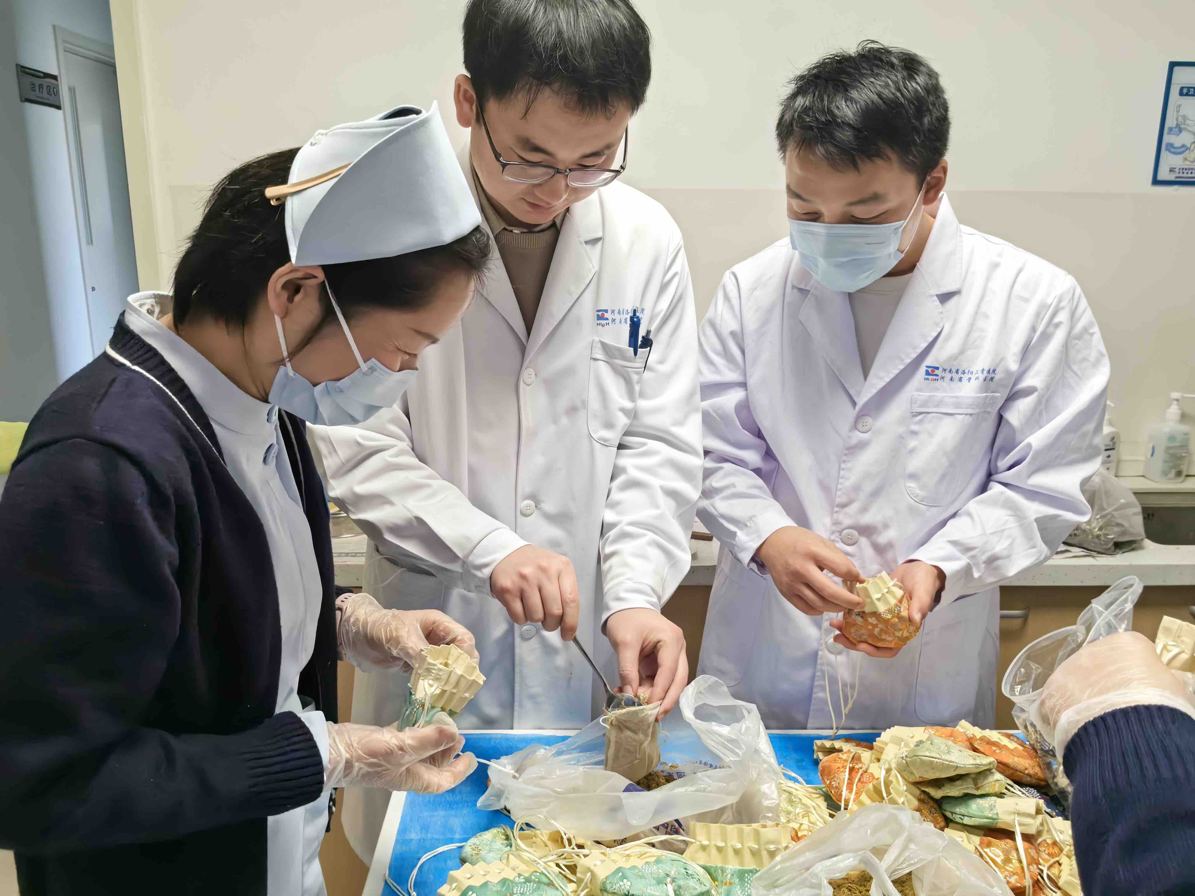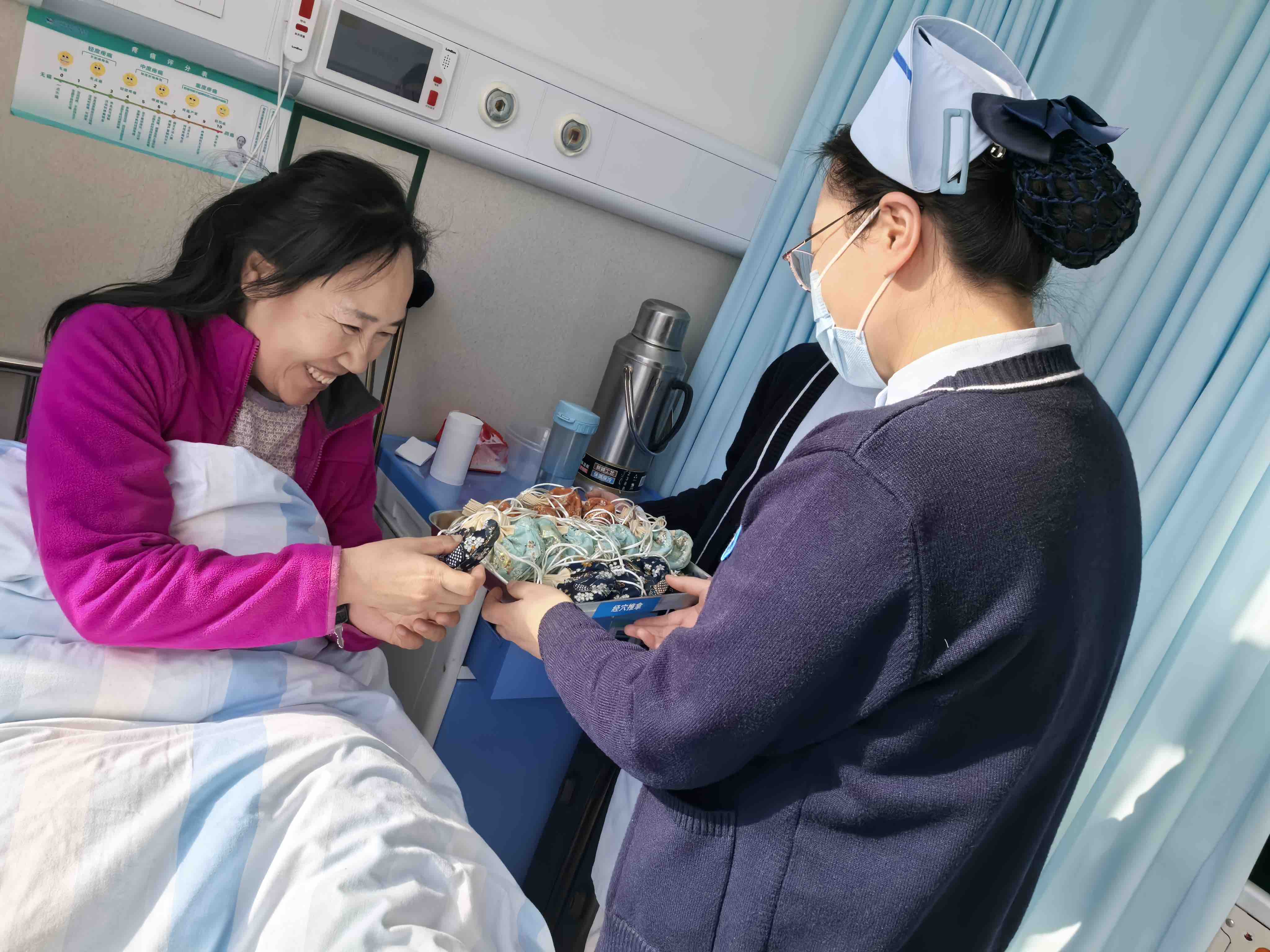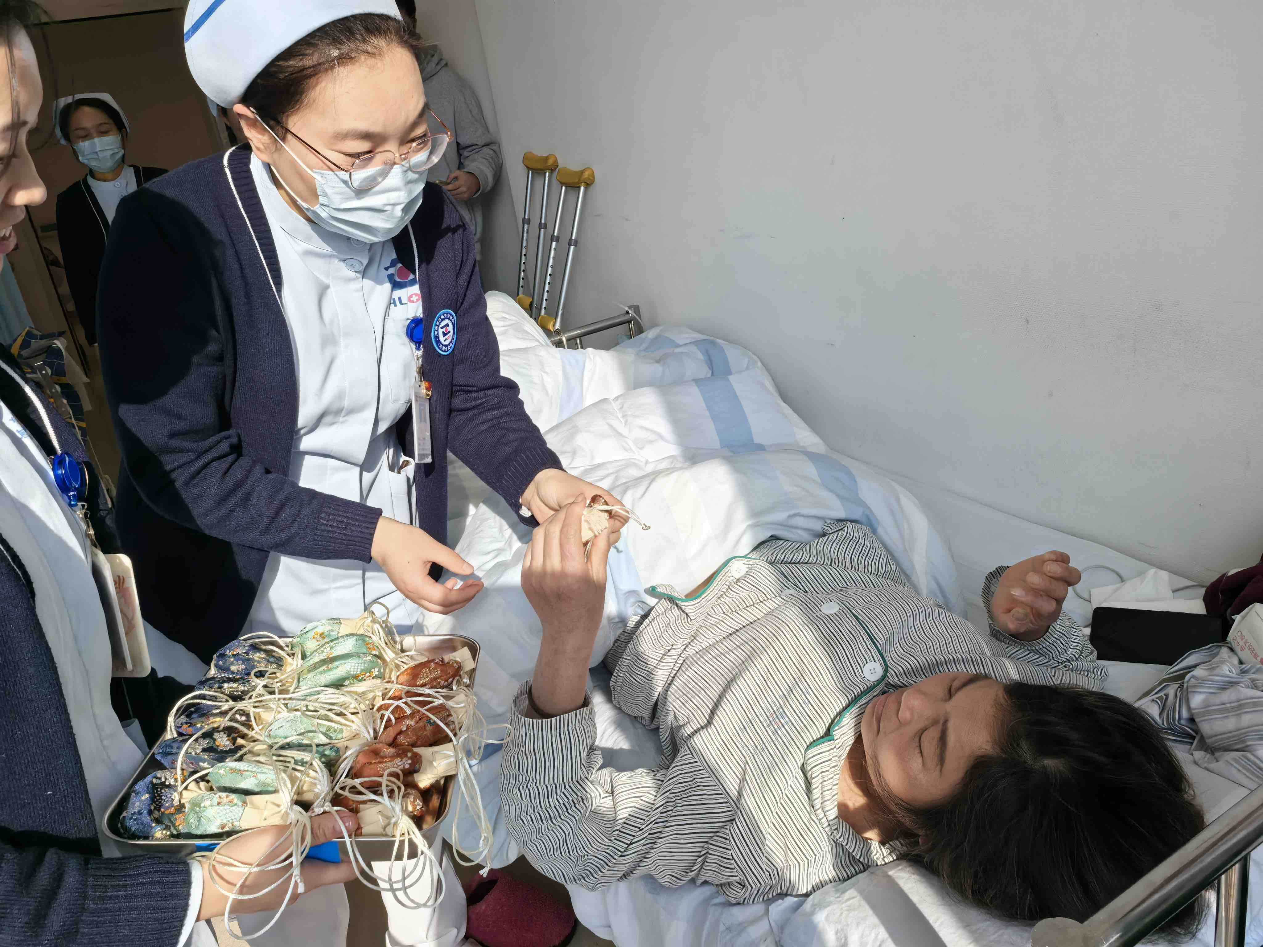 12月25日下午,在主任阎晓霞和护士长李金菊带领下,骨病科(骨坏死科)全体成员在病区“手作香囊”。大家在中药房老师们的指导下,认真学习制作过程,从药材选取、打粉、装袋、封口,一个个小巧精致且散发着淡淡药香的防感香囊逐渐成型。随后,大家将这份充满心意的手工作品逐一送到正在接受治疗的病友们手中。这份温暖的礼物,让每一位患者脸上都洋溢着喜悦的笑容,对于那些长期与疾病斗争的患者来说,他们感受到了来自社会大家庭的支持与鼓励,也深切的体会到了祖国传统医学的魅力和对老百姓的呵护!
