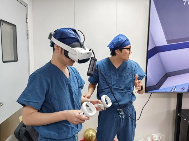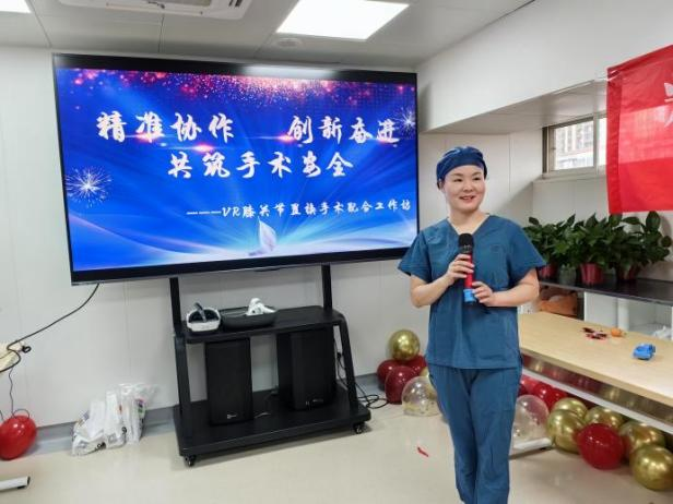 “工作坊”的沉浸式体验学习,激发了学员们动手实操的热情。在专业工程师的耐心指导下,大家积极地进行实操练习。手术室杨玉霞护士长表示:“随着医学领域飞速发展,高科技手段正深刻变革着医疗实践及教育培训,推动其向更高层次的精准、高效且人性化迈进,VR虚拟场景膝关节置换手术护理配合模拟操作练习工作坊为医护人员提供了一个难得的学习和实践机会,有助于提升大家的手术护理配合能力和实际操作水平,更好为患者服务。”