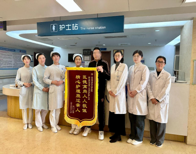 在我院康复院区骨与关节康复一科的护士站,一面绣着“医德高尚人人赞,精心护理胜过亲人”的锦旗熠熠生辉,这是对骨与关节康复一科团队的赞誉,也承载着医患深情。