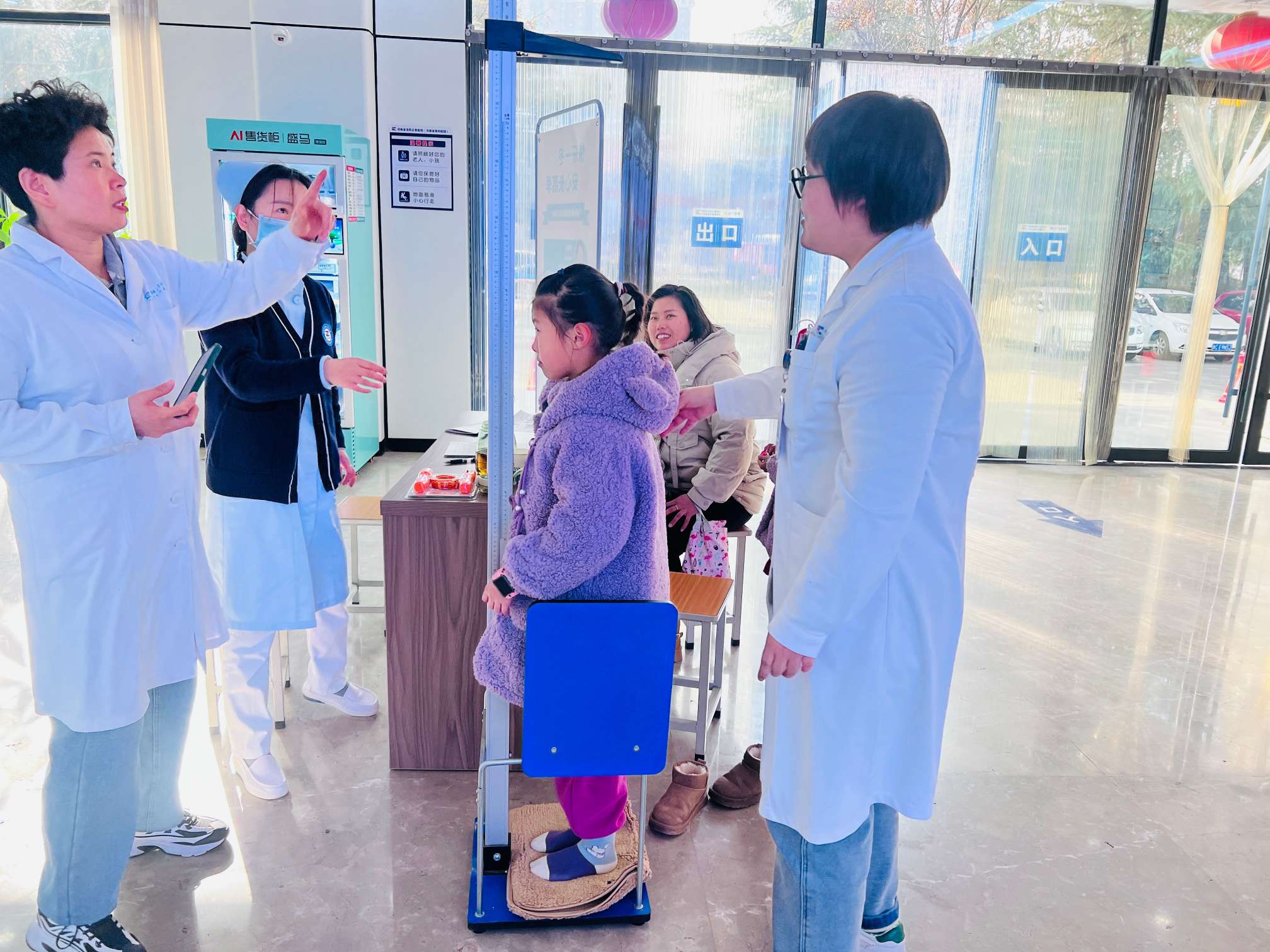 活动中,首先由护士李萌、王源进行引导,家长填写及核对信息,小朋友测量身高体重;接下来由医师张若晖带领小朋友进行骨龄检测等项目;随后,治未病门诊主任黄满玉、小儿骨伤一科主诊医师刘欢欢针对孩子们测量出的结果,进行详细耐心的解释和分析,减轻家长焦虑的同时,给出了相应的干预方案;最后由护士段丽娟带孩子们进行中医膏方脐贴的体验活动。