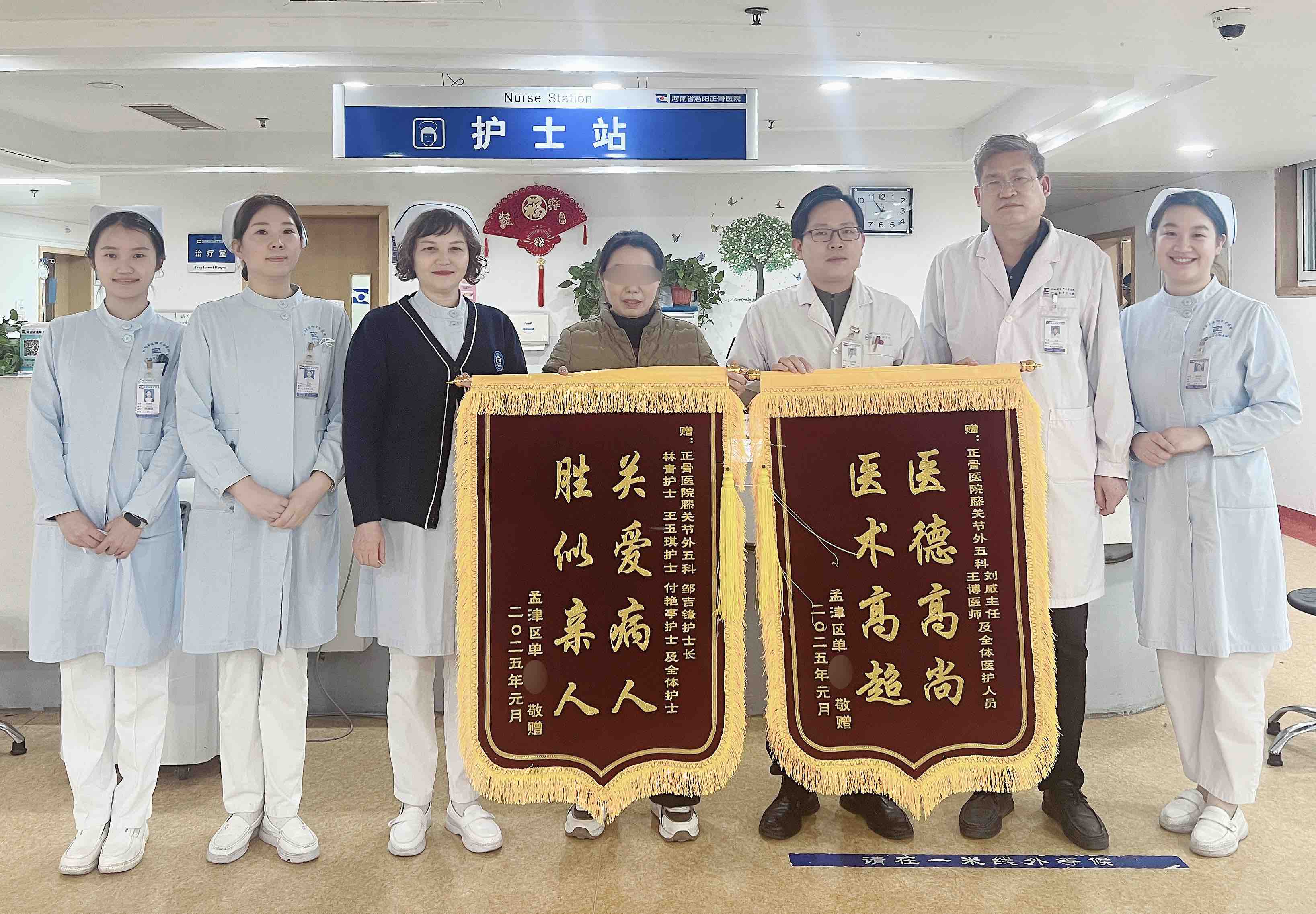 2025年初雪之际,我院膝关节外五科荣幸地收到了两面来自洛阳市孟津县患者的锦旗,它们熠熠生辉,满载着对医护团队细致入微、专业精湛的由衷赞誉与深切感激。