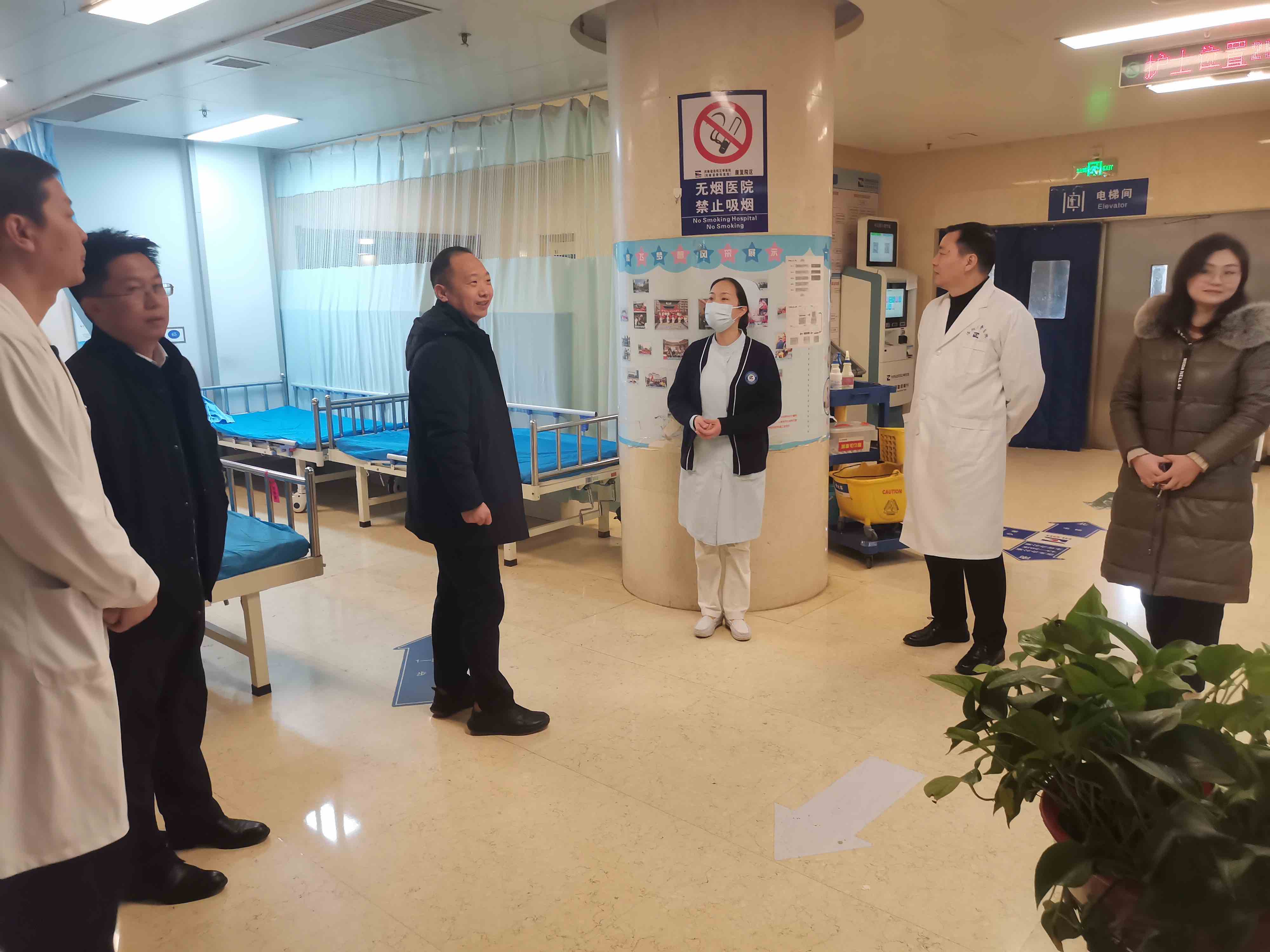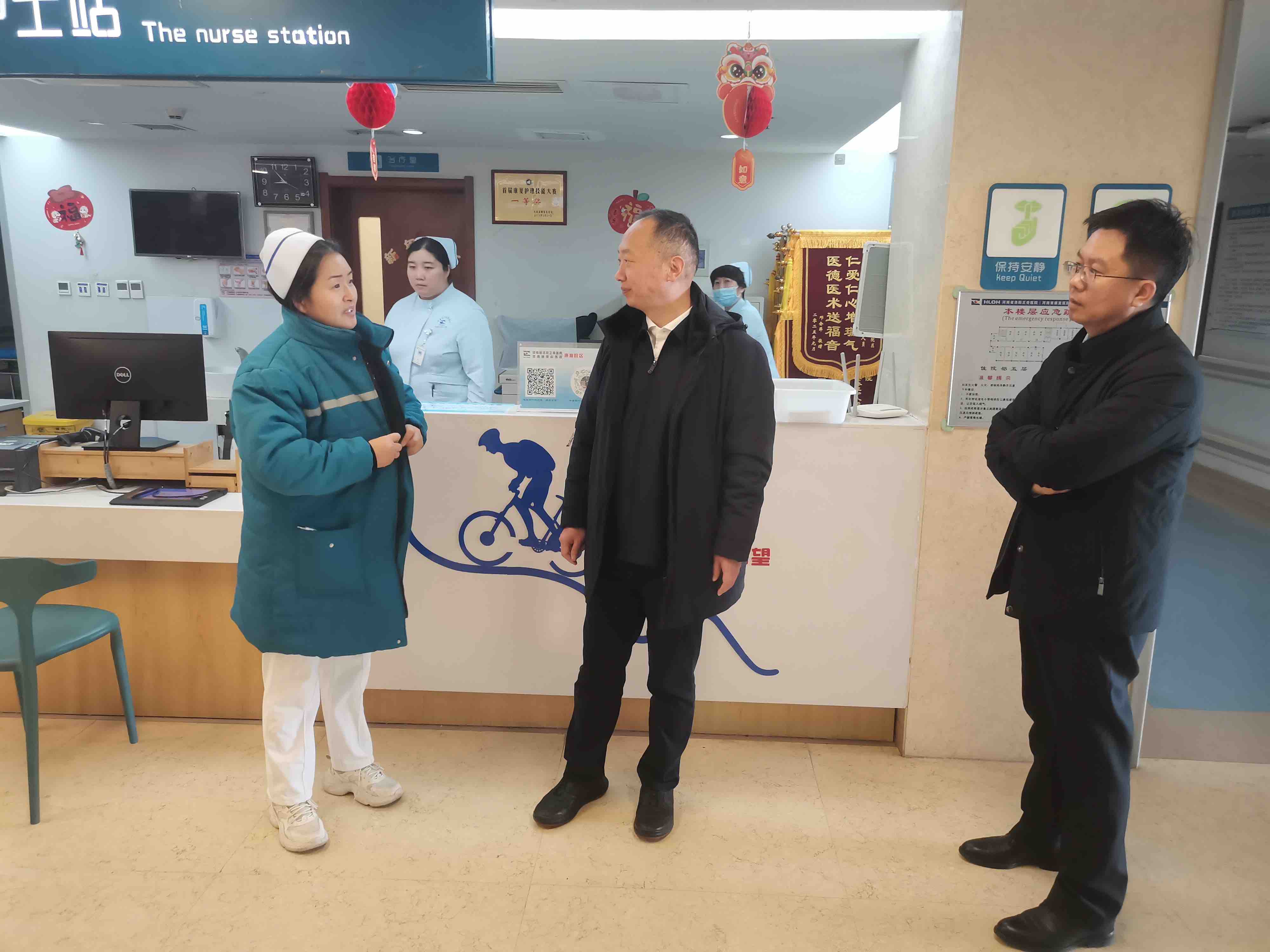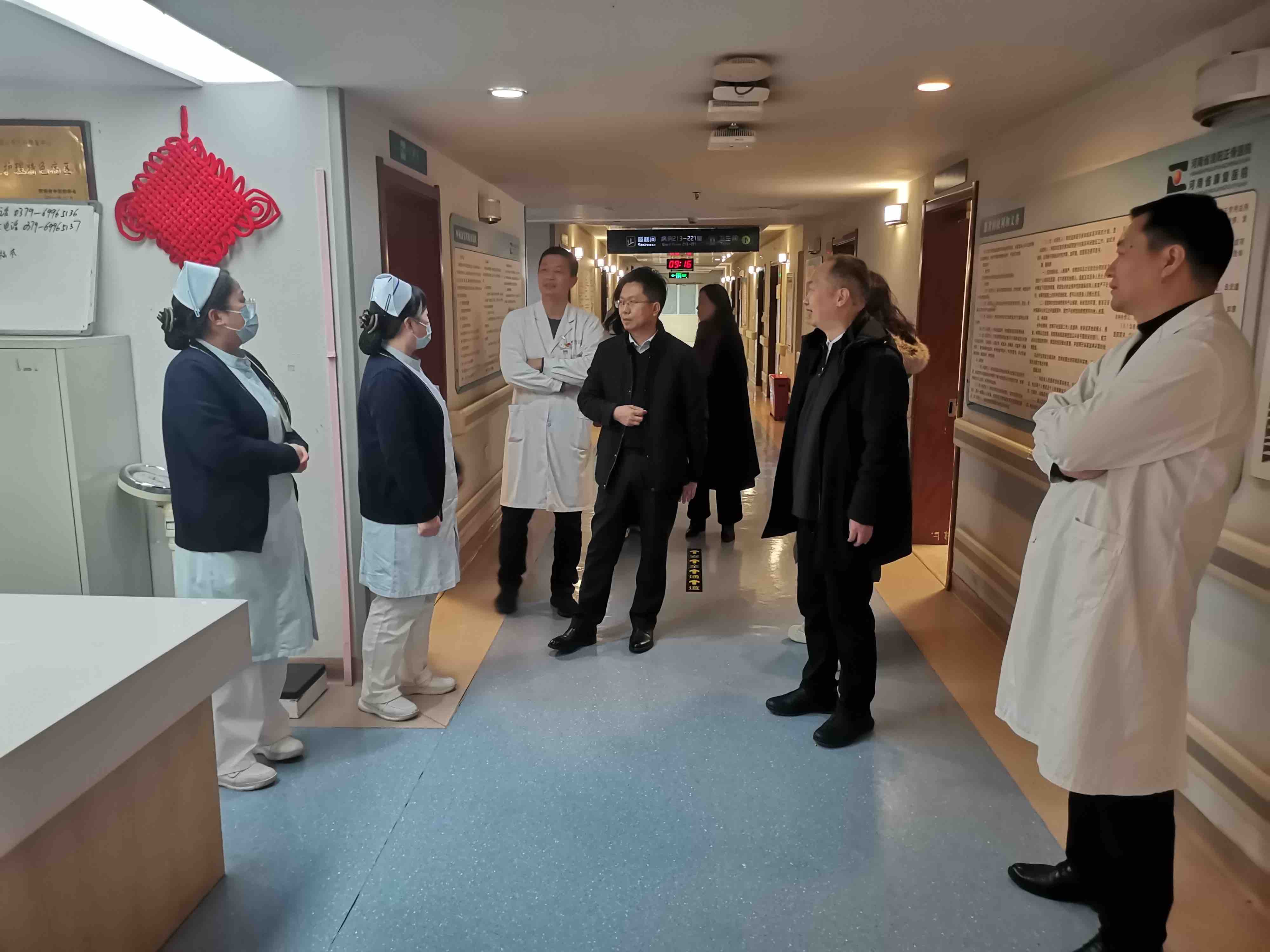 1月26日,雪后初霁,阳光明艳。院纪委书记赵长军、副院长赵明宇深入康复院区调研指导工作,强调确保诊疗安全,把好节前安全关,并慰问在岗工作人员,向大家致以新春祝福。院区张志杰、杨洸等负责同志和相关职能部门同志陪同。