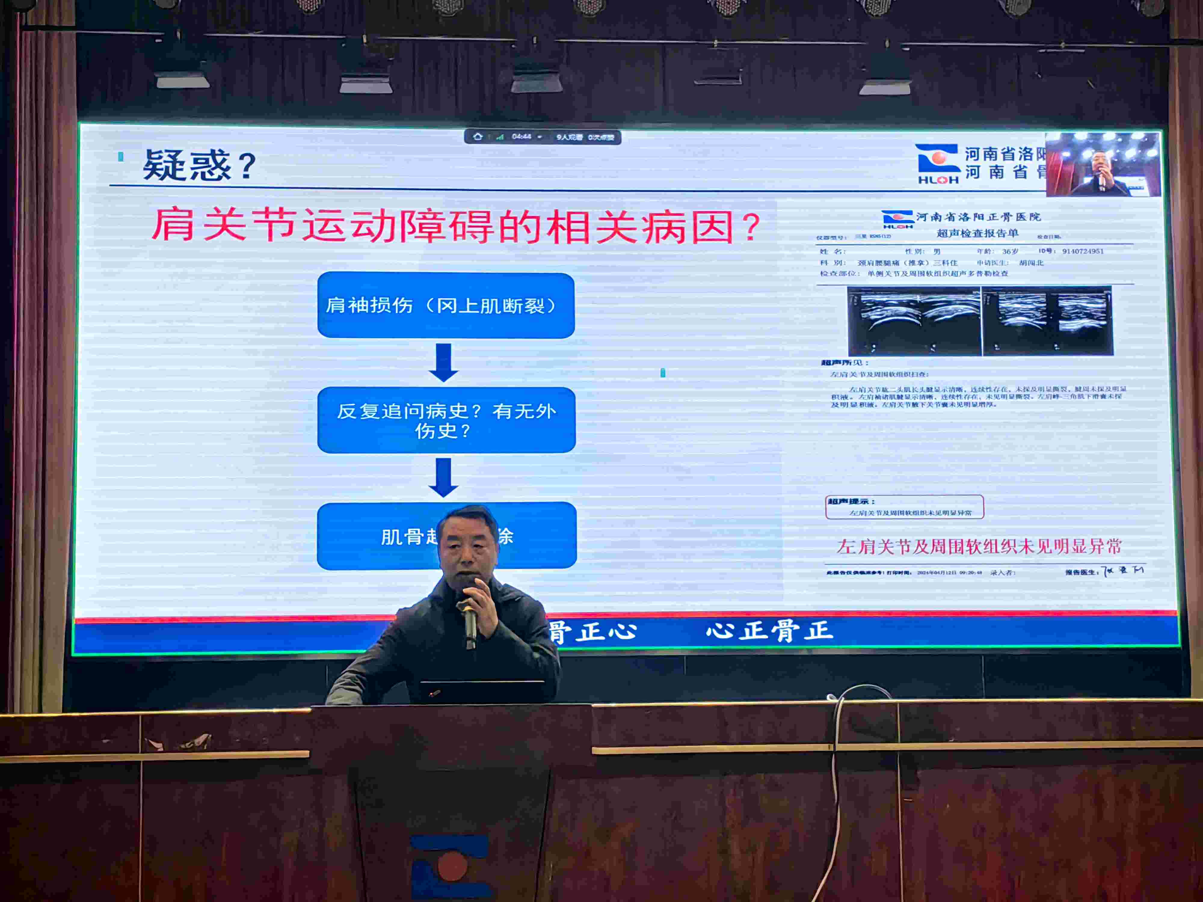 颈椎关联性肩关节运动障碍又称分离性上肢运动功能障碍型颈椎病,其主要特征是上肢的运动功能出现障碍,表现为上肢肌肉无力、运动不灵活、动作笨拙等,但感觉功能相对正常。宋主任由1例左肩关节疼痛伴抬举受限病例展开讲解,带大家初步了解了颈椎关联性肩关节运动障碍的表现,讲解了该病种的分型、研究进展、疾病评估、鉴别诊断。并通过多个实际病例,加深了大家对颈椎关联性肩关节运动障碍的认识,并展示了有效的治疗方案。