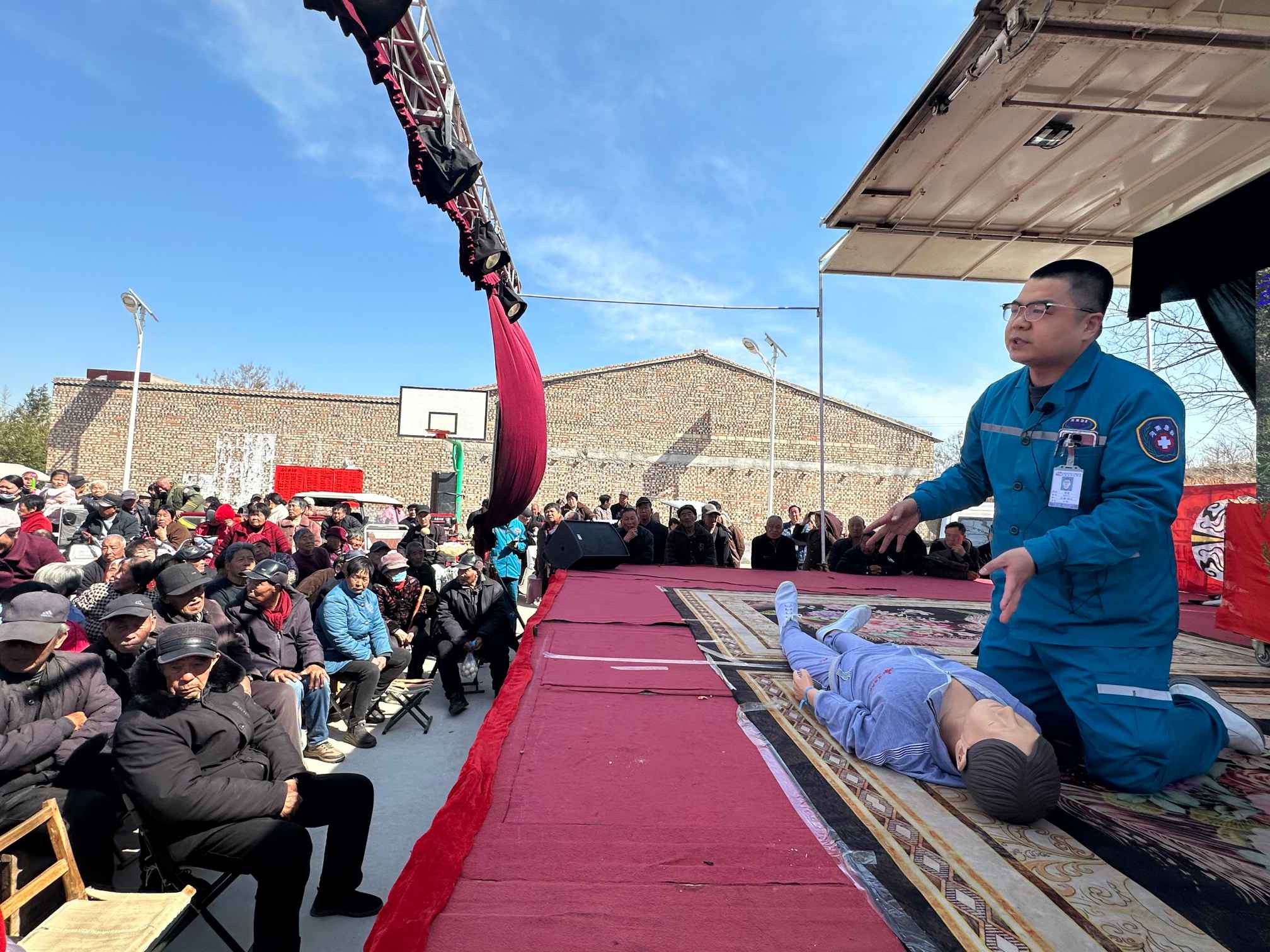 “以前遇到有人突然晕倒或者噎住,我们都不知道咋办,只能干着急,现在学了这些,以后心里就有底了!”一位参与培训的老人感慨地说。此次我院急救人员走上乡村戏台开展急救培训,不仅让留守老人学到了实用的急救技能,更在乡村营造了重视急救、关爱生命的良好氛围,为乡村居民的生命健康增添了一份有力保障。未来,我院还将持续开展此类活动,让急救知识惠及更多乡村百姓。