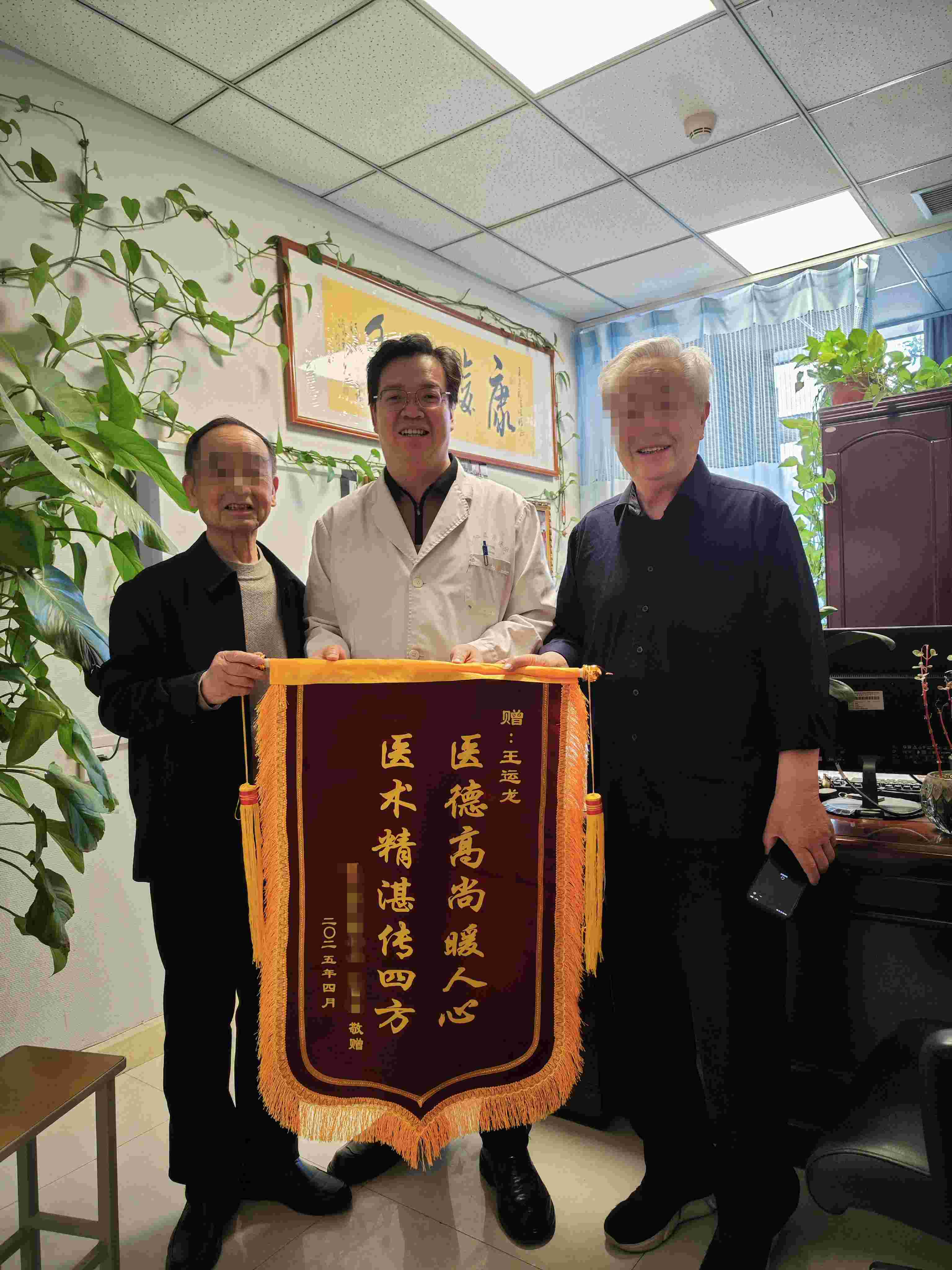 服药后的日子里,患者的病情逐渐好转,原本无法下床的她,如今已能自如行动。这份重获健康的喜悦,让她满心感激,决定用最质朴的方式表达对王运龙主任的谢意——亲自带着锦旗奔赴洛阳。当她将写有“医德高尚暖人心 医术精湛传四方”的锦旗递到王主任手中时,眼中闪烁着泪光,千言万语都化作了深深的鞠躬。