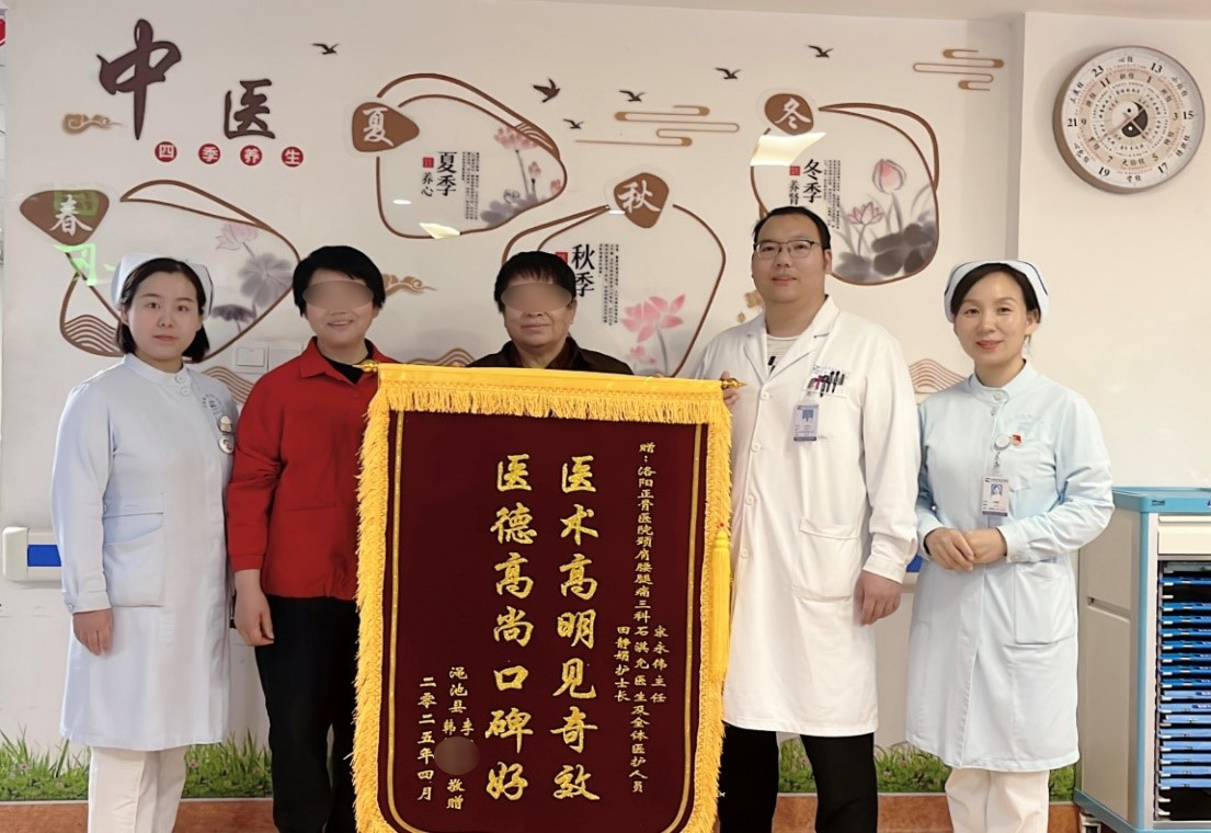 “给你们送锦旗了!我们明天要出院,太感谢你们这段时间的精心治疗及护理”。近日,患者韩阿姨与李阿姨,为颈肩腰腿痛三科医护人员送上了锦旗,“医术高明见奇效,医德高尚口碑好”,每一个字都饱和着这两位阿姨的深深感激。