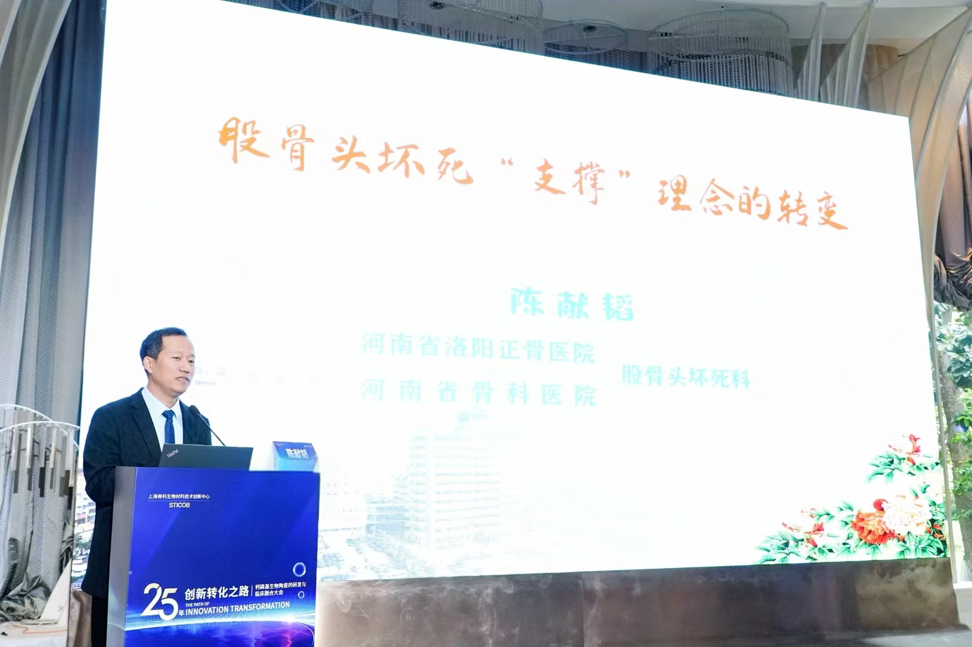 在这次学术盛会上,我院股骨头坏死科主任陈献韬分享了题为“股骨头坏死支撑理念的转变”的学术演讲。本次汇报结合股骨头坏死国内外诊疗历史现状,深入剖析了非创伤性股骨头坏死发病机制认知的变化、各种主流坏死分期分型的特点及传统治疗手段的局限性。陈献韬主任深入浅出地阐述了支撑理念的革新方向,不仅要关注机械力学支撑,更强调微环境改善与生物学修复的对立统一,提出在严格筛选适应症的前提下,微创手术结合生物活性材料,修复受损骨组织与微循环,促进骨组织再生,以达到“生物性支撑”的效果,提高股骨头坏死保髋治疗的成功率,改善患者的生活质量。