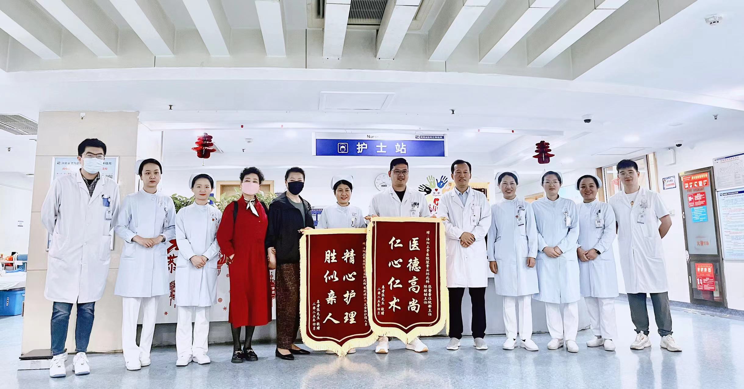 “每天查房三、四次,黄护士手把手教康复动作,协助我制定术后食谱。”住院期间,医护团队的专业与温情让张先生倍感温暖,住院一周张先生便可完成大部分日常生活所需的动作,满足生活需求。出院后,张先生特意委托自己的姐姐给我院医护人员送上感谢锦旗。