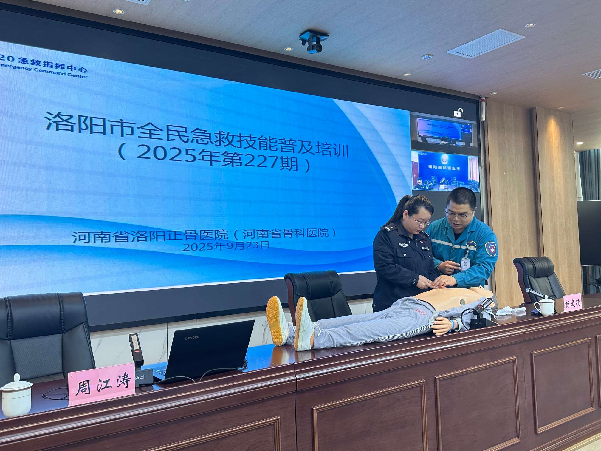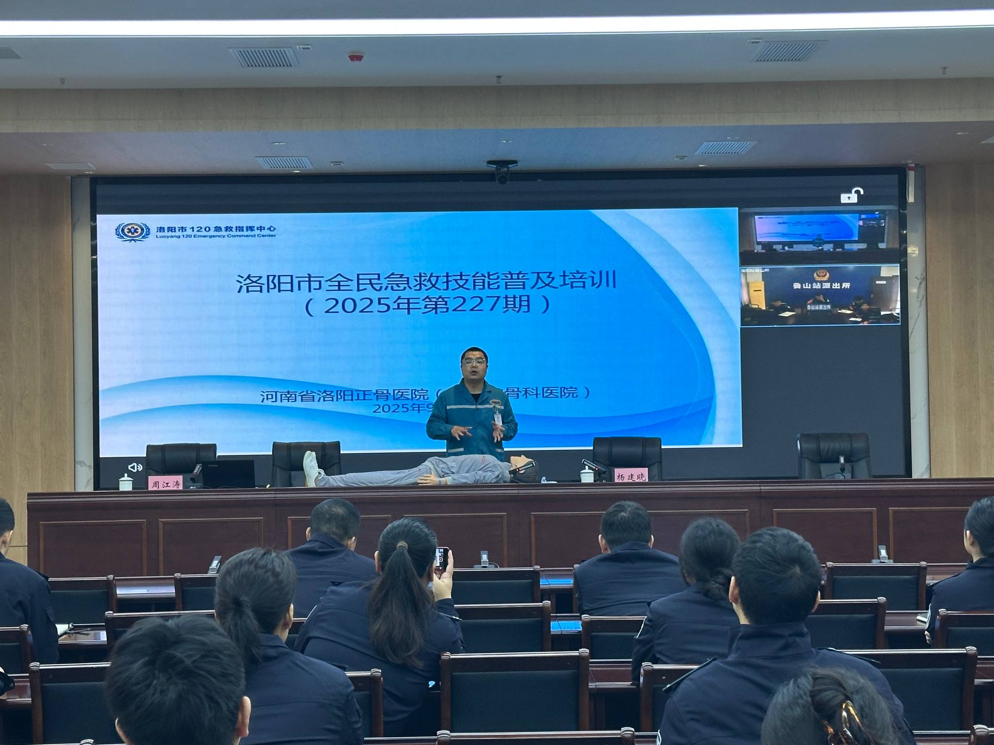 为筑牢一线民警安全防线,提升突发伤病现场处置能力,9月23日,我院洛阳院区急诊科(120急救站)主任王慧彪、外科副主任杨建晓及护士长周江涛带领团队受邀走进洛阳铁路公安处,开展创伤现场急救与关键生命支持技能培训,与铁路公安机关处室在现场并和30多个沿线派出所视频连线,进行了一场兼具理论性与实操性的“急救必修课”。