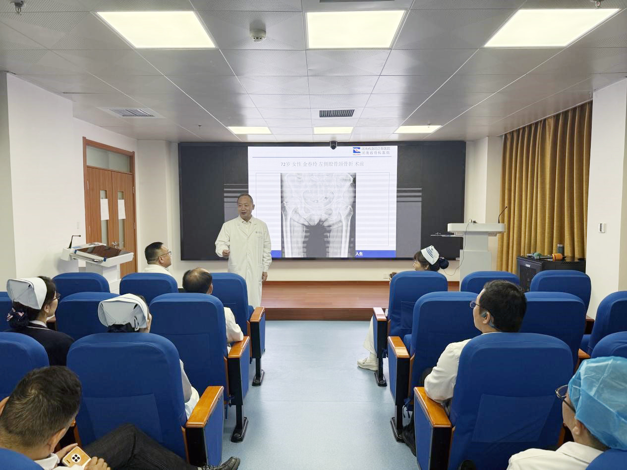髋关节外科诊疗中心主任陈柯围绕医院“一院两区、协同发展”战略部署,系统解读了髋关节外科诊疗中心未来三年发展规划,明确提出重点提升老年髋部骨折与疑难复杂病例救治能力,同步强化科研创新与人才培养力度,加强“走出去、引进来”能力,促进学科发展。洛阳院区在交班后同步开展病例汇报与中心查房环节,根据病区选取病例从术前评估、手术方案设计到术后疗效等由管床医师分别进行汇报。中心主任结合典型病例强调:“要以患者为中心,持续提升医疗水平,持续提升患者就医体验。”