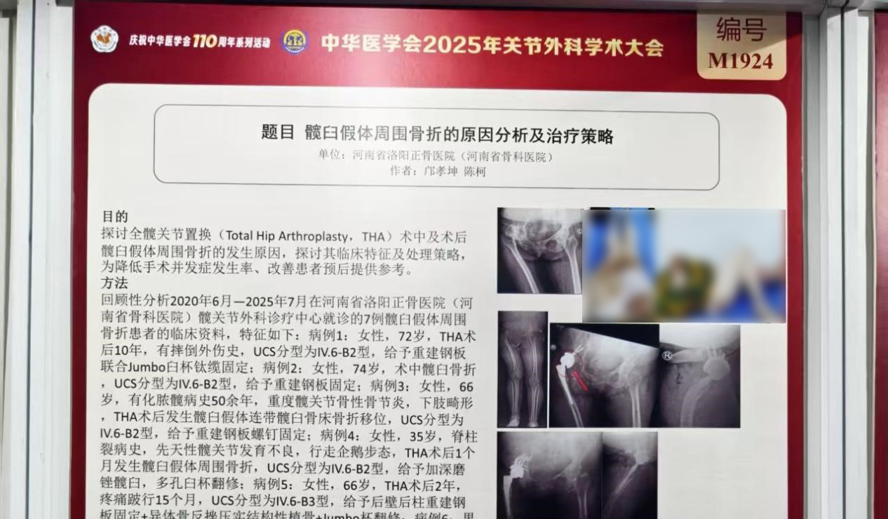 洛阳院区髋关节外三科医师邝孝坤结合近年我院收治的髋臼假体周围骨折的病历资料,进行了诊疗经验与思路的壁报展示。