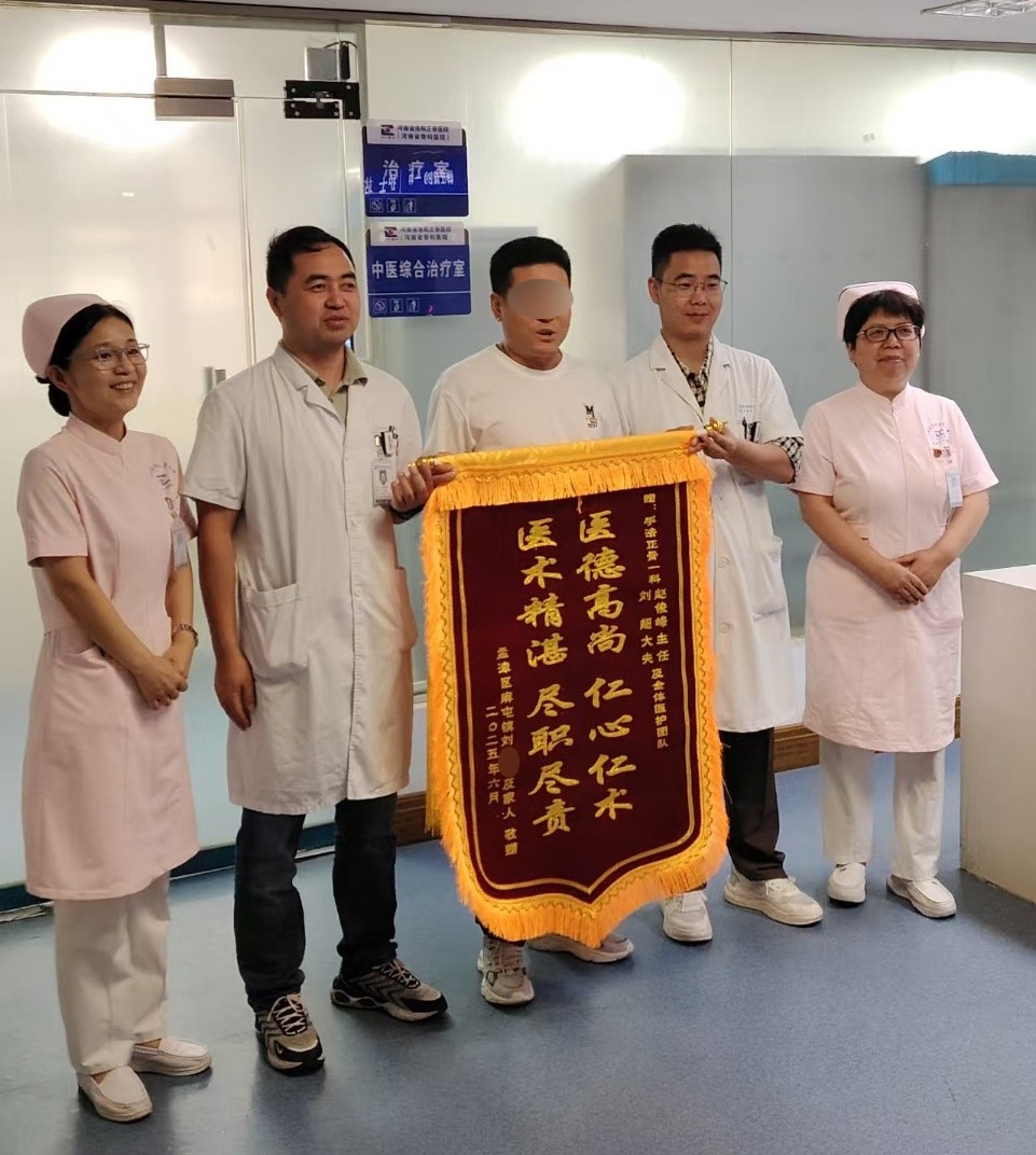 “从来就诊到治疗结束仅半个小时左右,医生技术高超,细思缜密,治疗及时,平乐正骨名不虚传。”赠送锦旗时,赵阿姨激动地说。面对患者及家属的认可,赵俊峰主诊医师表示:“锦旗是荣誉,更是责任。我们会继续以患者为中心,用更精湛的医术和更优质的服务,帮助更多患者摆脱病痛。”