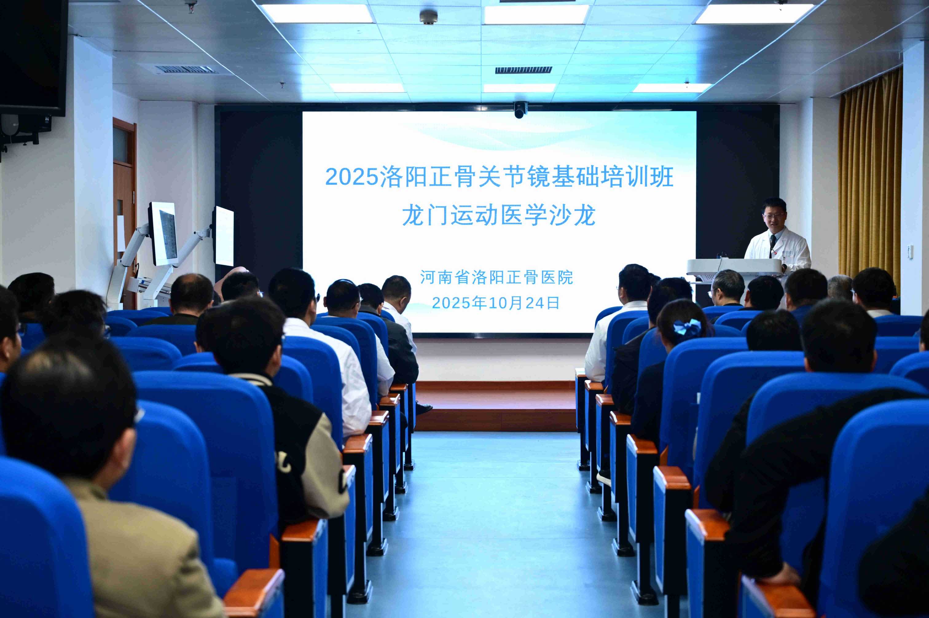 10月24日,由我院运动医学中心举办的“2025洛阳正骨关节镜基础培训班”在洛阳院区圆满落幕。我院院长助理、运动医学中心主任、河南省医学会运动医疗分会主任委员黄遂柱,我院膝关节外科诊疗中心主任、洛阳市医学会运动医疗专业委员会主任委员谭红略参加开班仪式并致辞,会议由洛阳院区运动医学一科主诊组长杨澜波主持。本次培训旨在通过提升青年医师关节镜微创手术的操作能力,助力区域运动医学专科发展,来自省内10所医院的40余位学员参加了会议。