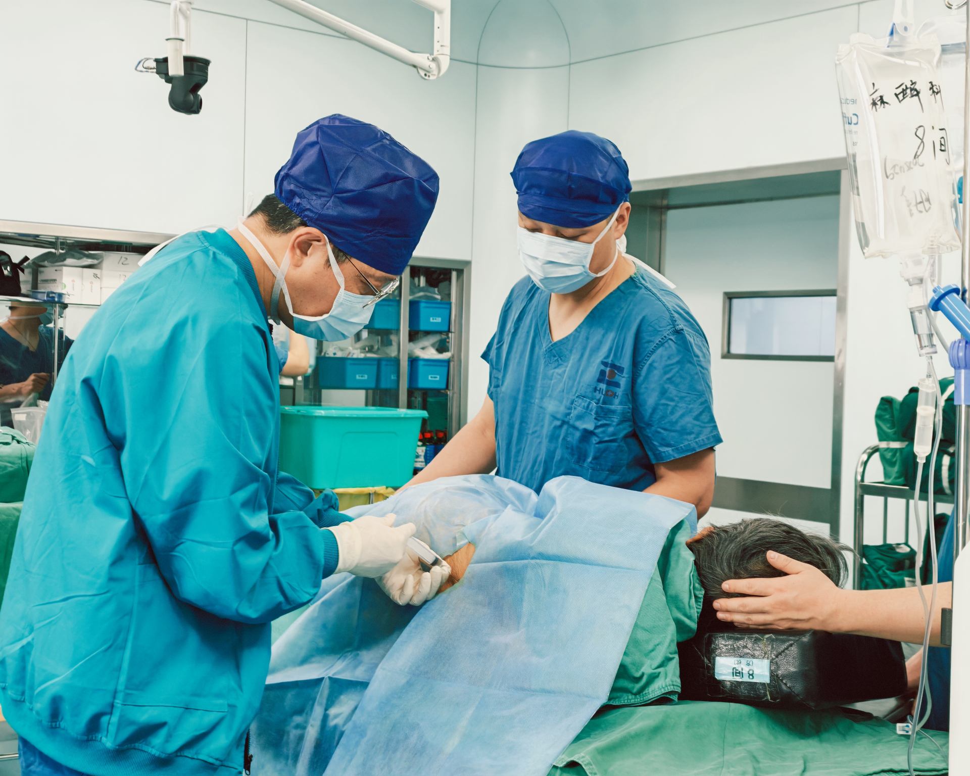 面对这一复杂情况,麻醉与围术期医学中心主任于国军组织团队开展全面评估,结合影像学资料深入分析患者脊柱形态,精准定位穿刺点,并制定了多套备选麻醉方案,确保手术安全万无一失。