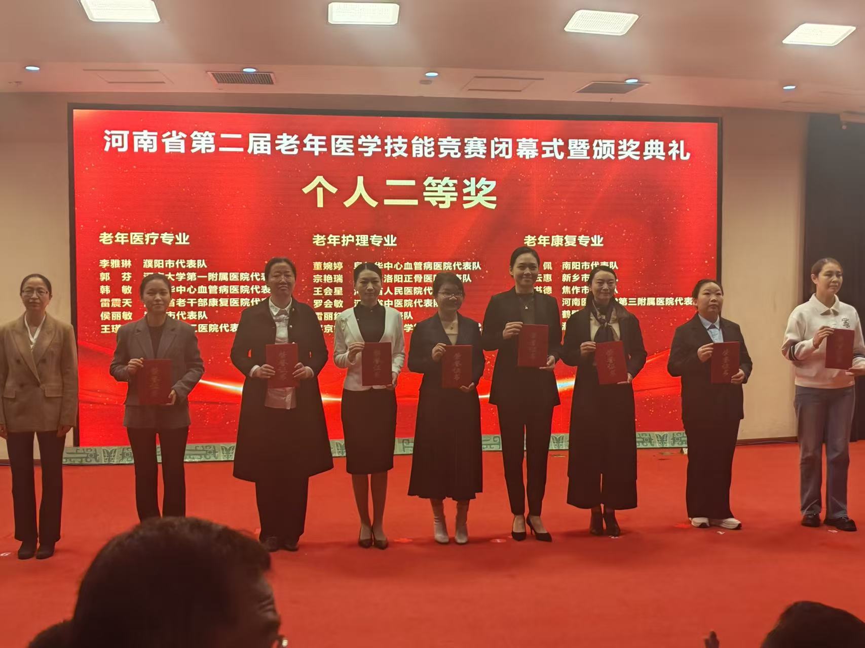 竞赛设老年医疗、护理、康复三大专业,通过理论考试、技能操作、病例分析多环节考核综合能力。经过三天角逐,我院康复院区主管护师宗艳瑞表现突出,最终荣获老年护理专业个人二等奖,充分展现我院老年护理团队的专业实力与职业素养。