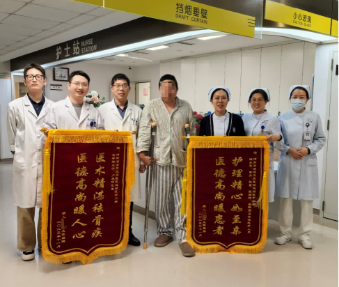 在康复出院之际,多位患者及家属特意送上锦旗表达谢意。锦旗上“医术精湛 医德高尚”“护理精心 如至亲”“骨科专家 患者福音”等真挚话语,传递出他们对我科医护团队技术能力和服务品质的双重肯定。