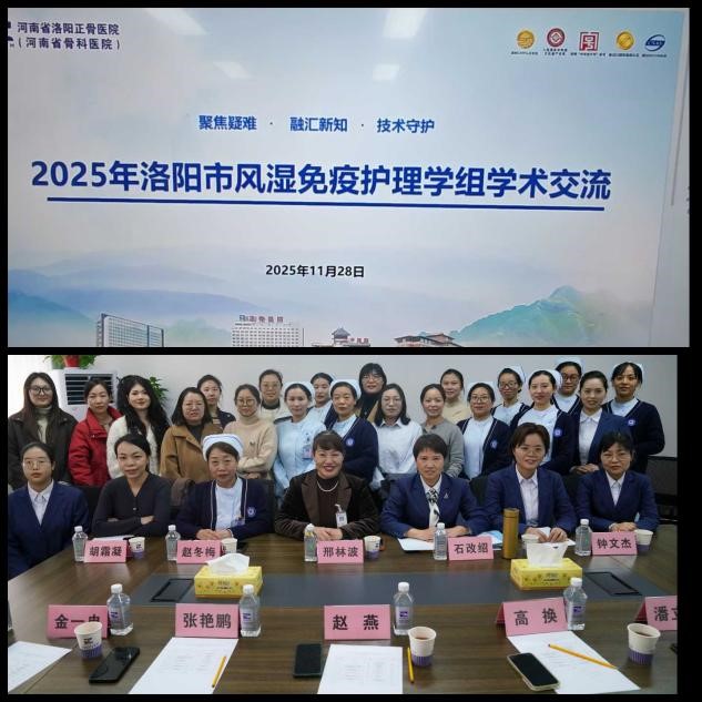 2025年11月28日,由我院承办的洛阳市风湿免疫护理学术交流会成功举办。来自全市多家医院的护理同仁齐聚一堂,本次会议主题“聚焦疑难?融汇新知?技术守护”,会议由我院风湿病诊疗中心护士长、洛阳市风湿免疫护理学组副组长赵冬梅主持。我院护理部主任邢林波首先致欢迎辞,洛阳市风湿免疫护理学组组长石改绍致开幕词。