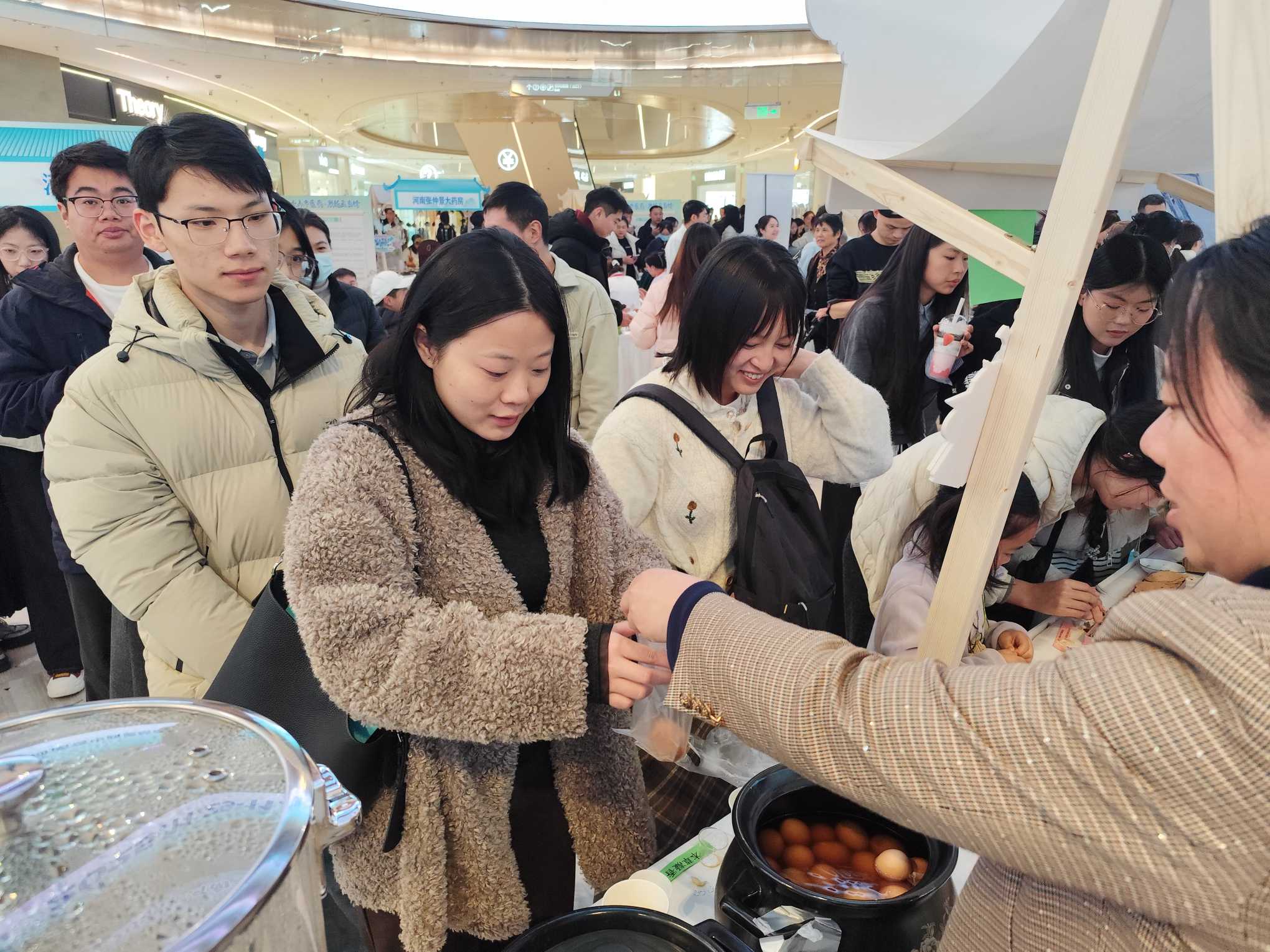 在互动体验区,我院药剂团队围绕“闻药香、识药性、尝药茶、品药膳”指导市民群众“闻香识药”,除提供“百草凝香蛋”和三款“秋冬养生茶饮”外,还带去了首届药膳技能大赛获奖药膳,尤其是中医药饰品互动区域,吸引大量青年人群驻足观看和互动体验。