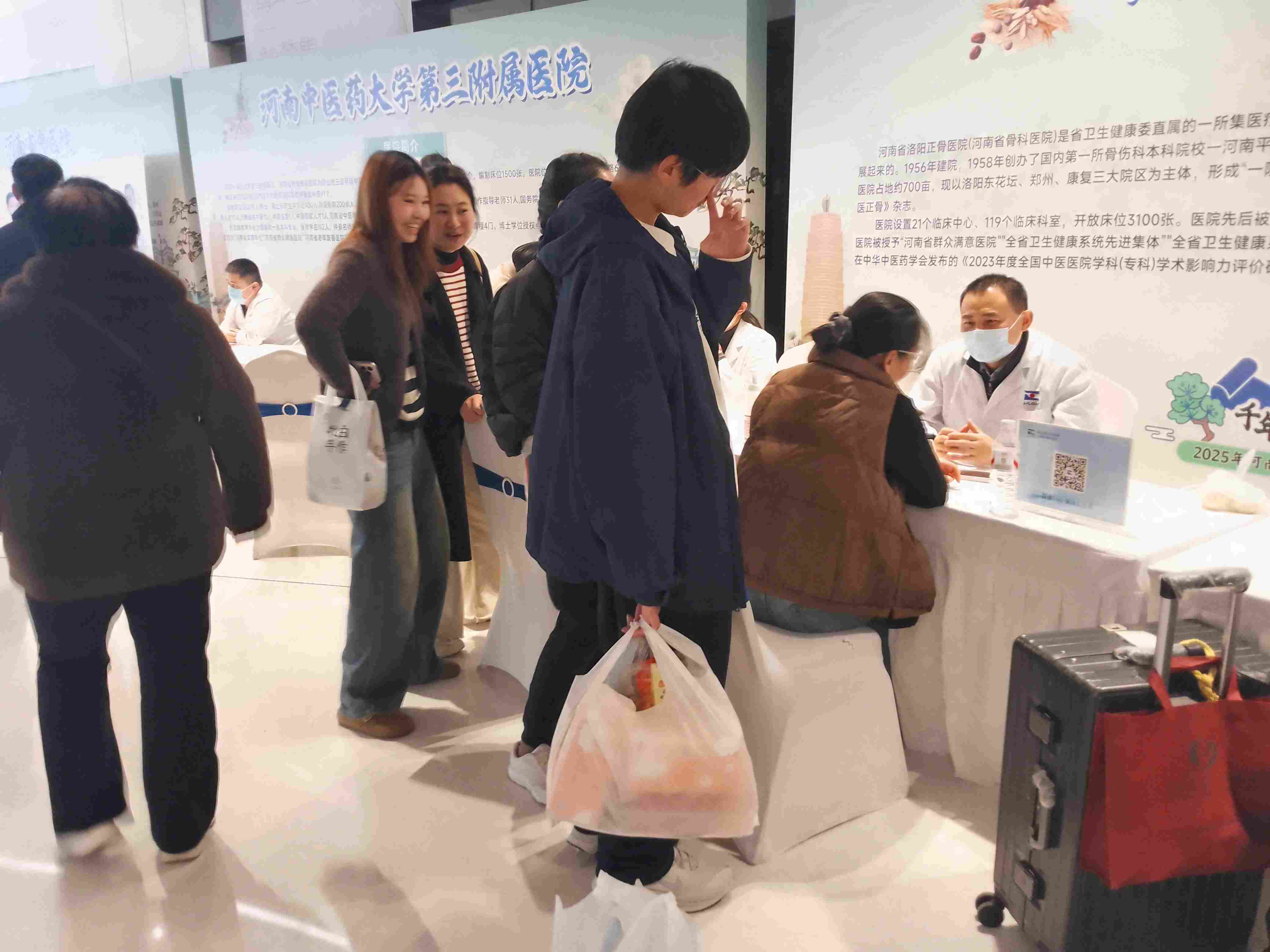 为深入学习贯彻习近平总书记在河南考察时重要讲话精神,由河南省卫生健康委员会(河南省中医药管理局)主办的“千年中医药 潮起正当时”2025年省级中医药文化市集活动于11月29日、30日成功举办。我院应邀积极参加此次活动。我院郑州院区党总支办公室组织医疗、护理、药剂、文化建设多学科团队,通过立体化、多维度的展示与互动,为郑州市民群众带来一场权威、专业、生动的中医药文化盛宴。