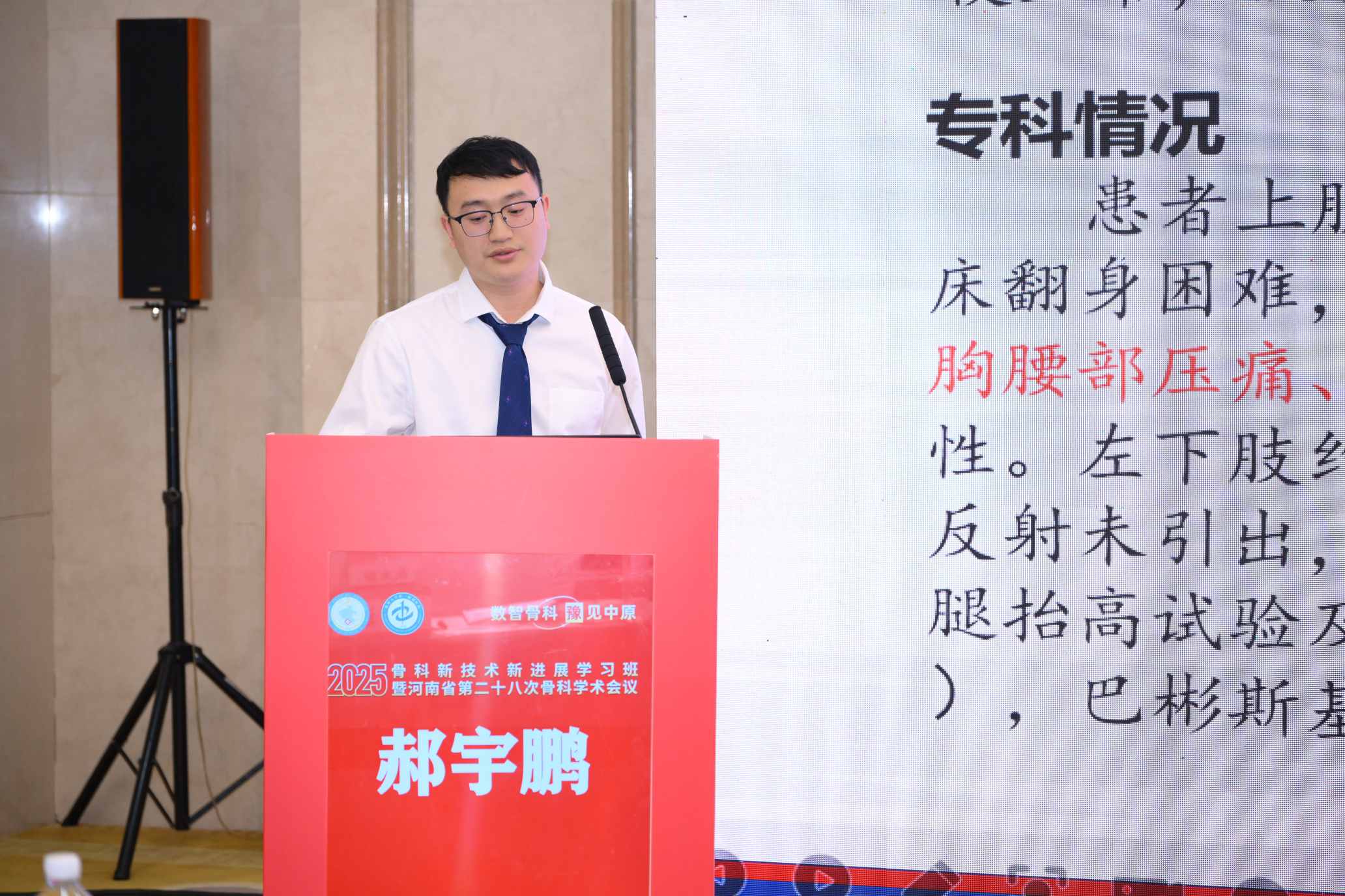 我院洛阳院区脊柱外科诊疗中心八位专家组团参会。在“豫见箐英”病例交流会上,分别由脊柱外科诊疗中心名誉主任周英杰担任大会主席、洛阳院区脊柱外科诊疗中心副主任卜保献等为主持,脊柱外三科主任陈海龙等为点评专家,来自省内及全国各大三甲医院的20位青年才俊在各自导师的指导下均作为了精彩的典型病例汇报,与会专家做出高展建瓯式的点评。脊柱外一科医师郝宇鹏以“精准穿刺椎体成形术治疗疏松性椎体压缩骨折病例分享”为题参加了病例交流,将洛阳正骨的诊疗技术展现给各位专家同行,并获得优秀病例奖。