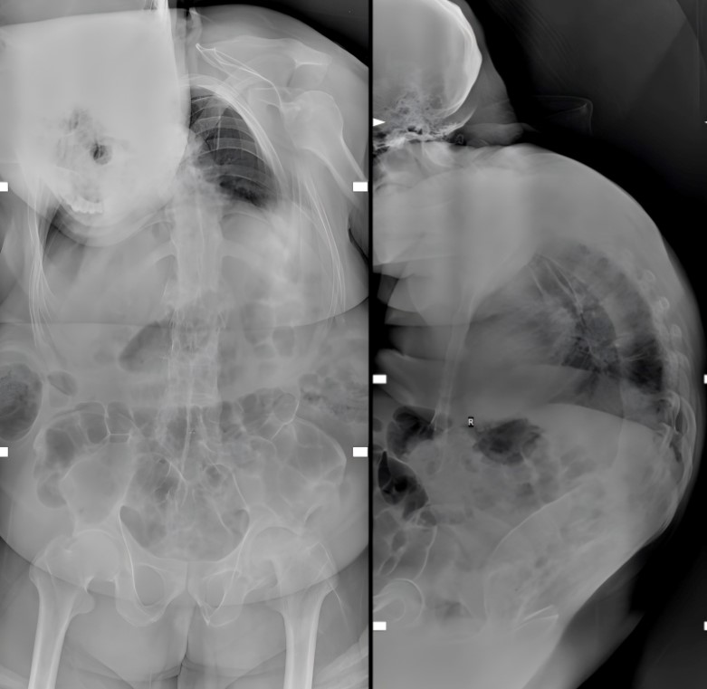 患者为57岁男性,因胸椎骨折、胸部脊髓损伤入院,需紧急手术固定以挽救脊髓功能。然而,患者长达二十余年的强直性脊柱炎病史,已导致其脊柱呈“竹节样”改变,严重后凸无法平卧,颈部及下颌关节活动严重受限,为手术体位的安置与麻醉气管插管带来了极大挑战。