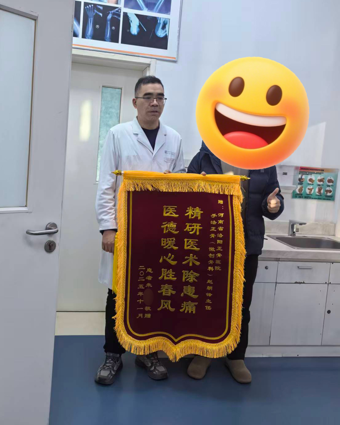 “太感谢赵主任和田医生了!传统手法正骨太神奇了,不用开刀、不遭罪,花的钱还比手术少太多,不仅帮我保住了完美婚礼,还让我快速康复,这份恩情一辈子都记着!”朱先生送来锦旗再三致谢,对平乐郭氏传统手法正骨的优势赞不绝口。