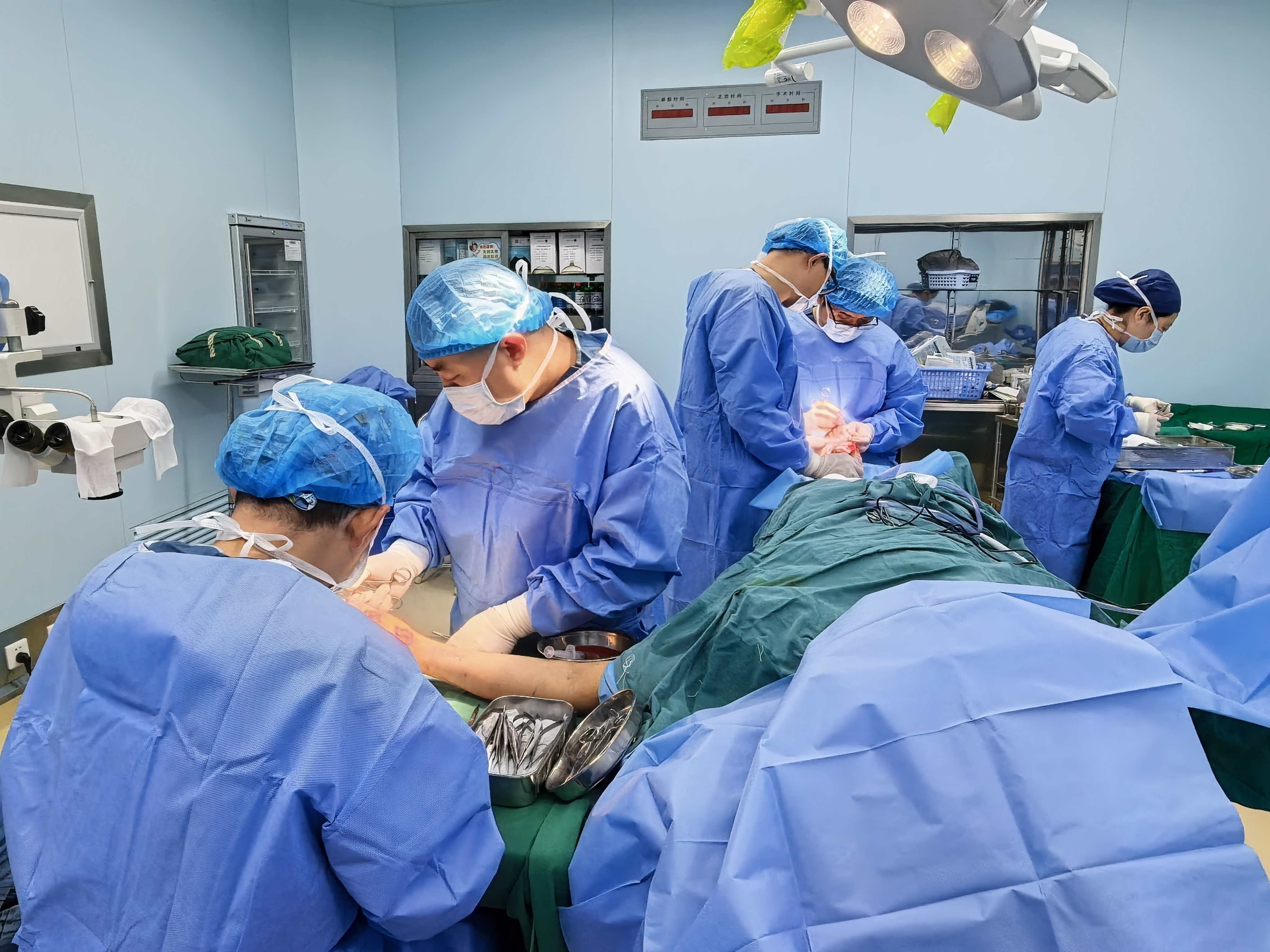手术中,手外显微骨科诊疗中心副主任、洛阳院区手外显微骨三科主任赵祚塨与手外显微骨三科刘铁虎医师等在显微镜下精细吻合血管、神经,确保移植组织血供通畅,为后续功能恢复奠定基础。历经数小时的精细操作,手术顺利完成。