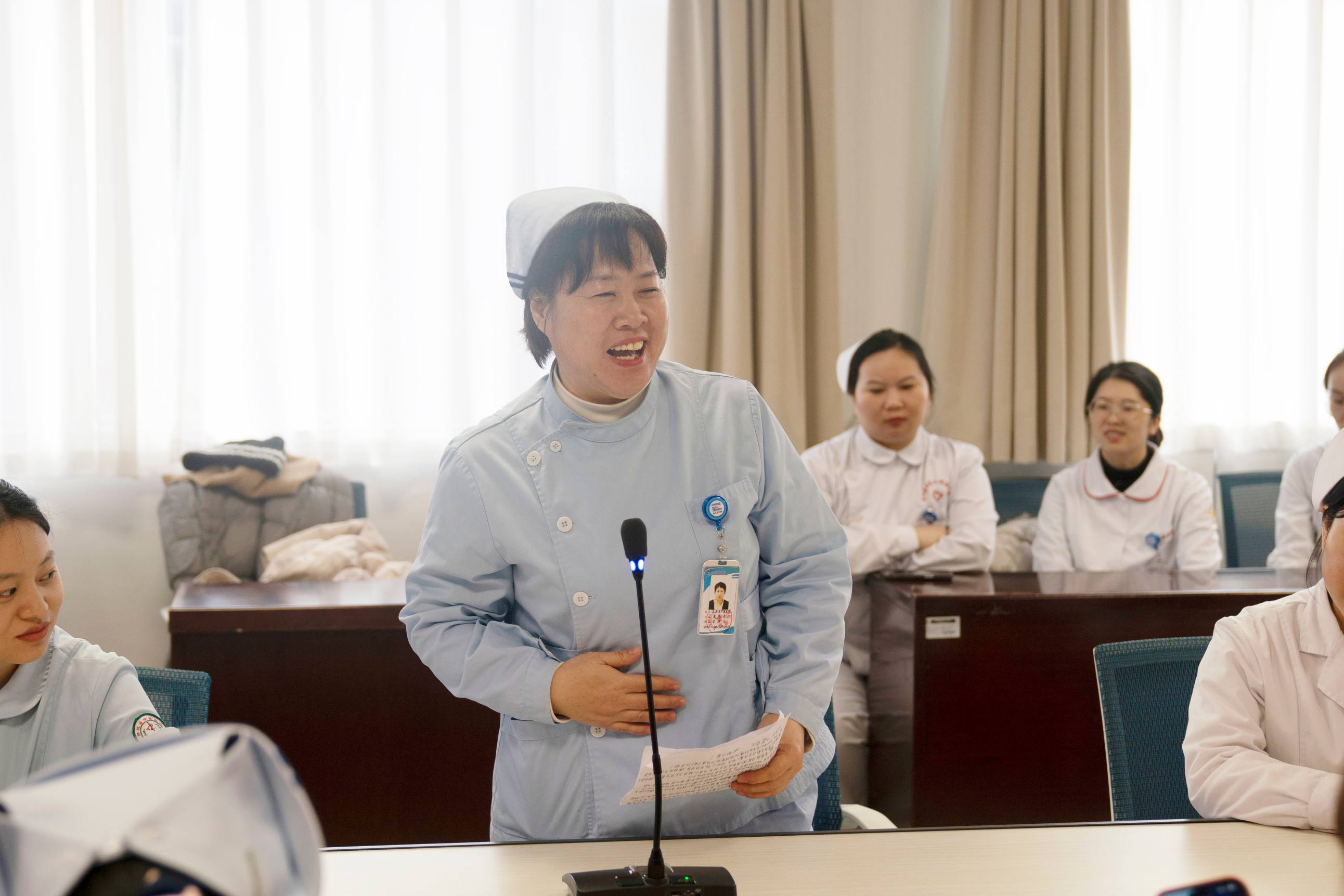 我院郑州院区护理门诊护士长魏培利作为带教老师代表分享带教初心,她坦言与学员在朝夕相处中实现了教学相长,这份荣誉属于全体带教团队,未来会继续精进教学,助力更多专科护理人才成长。