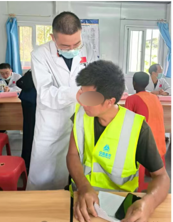 在中交集团阿尔巴门奇度假村项目,医疗队结合当地日照强烈、户外活动多的实际情况,将健康宣教的重点放在常见外伤的现场急救处理及白内障等眼部疾病的预防上。赵村辉等人通过生动的语言和形象的展示,指导员工在事故发生时如何正确进行紧急处理。