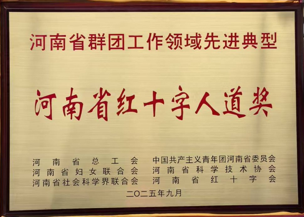 2025年12月24日,河南省总工会、共青团河南省委、河南省妇女联合会、河南省科学技术协会、河南省社会科学界联合会、河南省红十字会联合发布《关于表彰2025年河南省群团工作领域先进典型的决定》,我院荣获“2025年河南省红十字人道奖先进集体”称号。