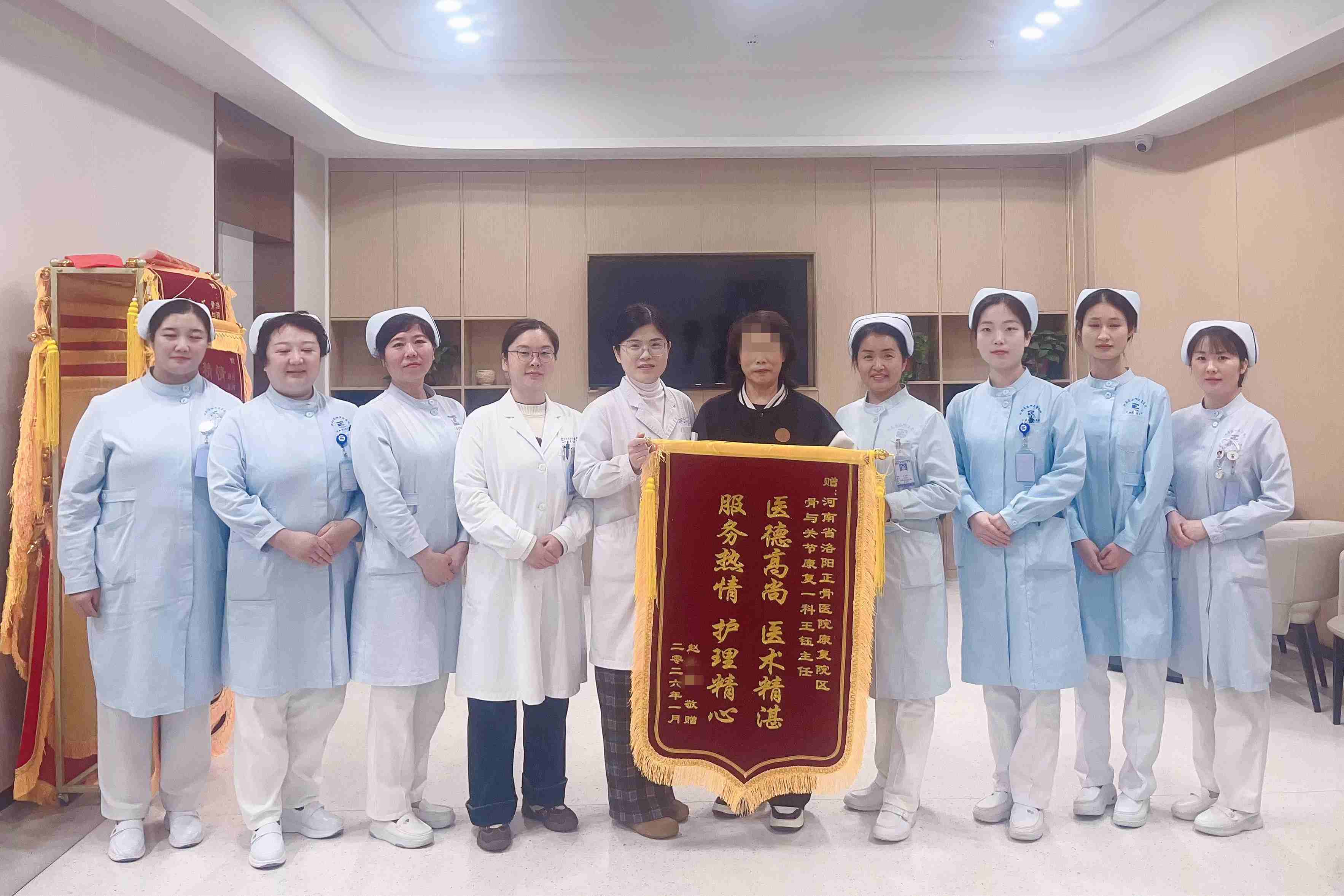 近日,我院康复院区骨与关节康复一科患者赵女士顺利出院。临别之际,她与家人将一面印有“医德高尚 医术精湛 服务热情 护理精心”的锦旗,郑重交到主治医师王钰及其团队手中,以此表达对全科医护人员倾心治疗、无私关爱的深深感激。这面锦旗不仅承载着患者的信任与认可,更见证了科室在复杂骨关节术后功能障碍康复领域的专业实力与人文温度。