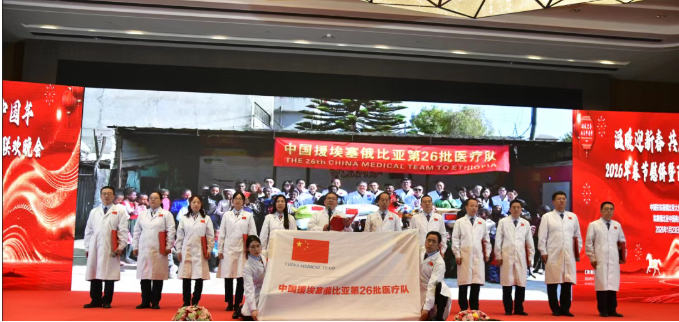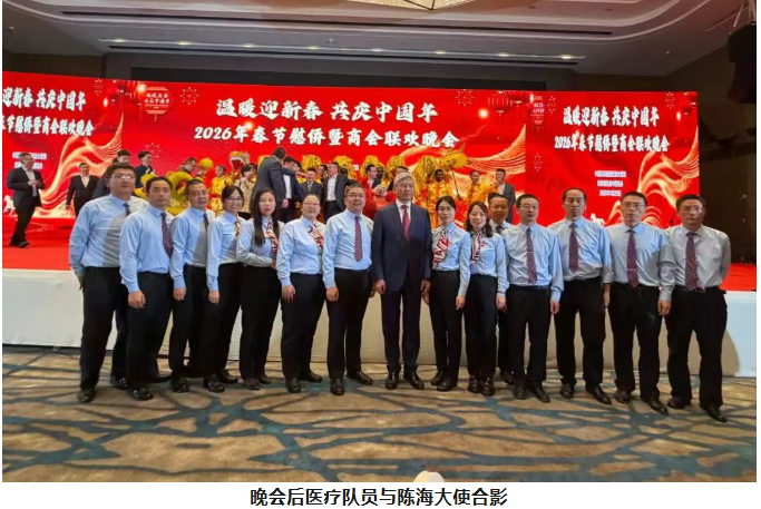 2026年1月23日,由中国驻埃塞俄比亚使馆和埃塞中国商会共同举办的“温暖迎新春?共庆中国年——2026年春节慰侨暨商会联欢晚会”在亚的斯亚贝巴格兰云天酒店温馨举行。中国驻埃塞使馆、驻非盟使团、埃塞中国商会会员企业和旅埃侨胞代表、援埃医疗队等400余人欢聚一堂,共迎马年新春佳节。我院赵村辉医生和第26批援埃塞俄比亚中国医疗队应邀参加活动,并献上原创诗朗诵节目。