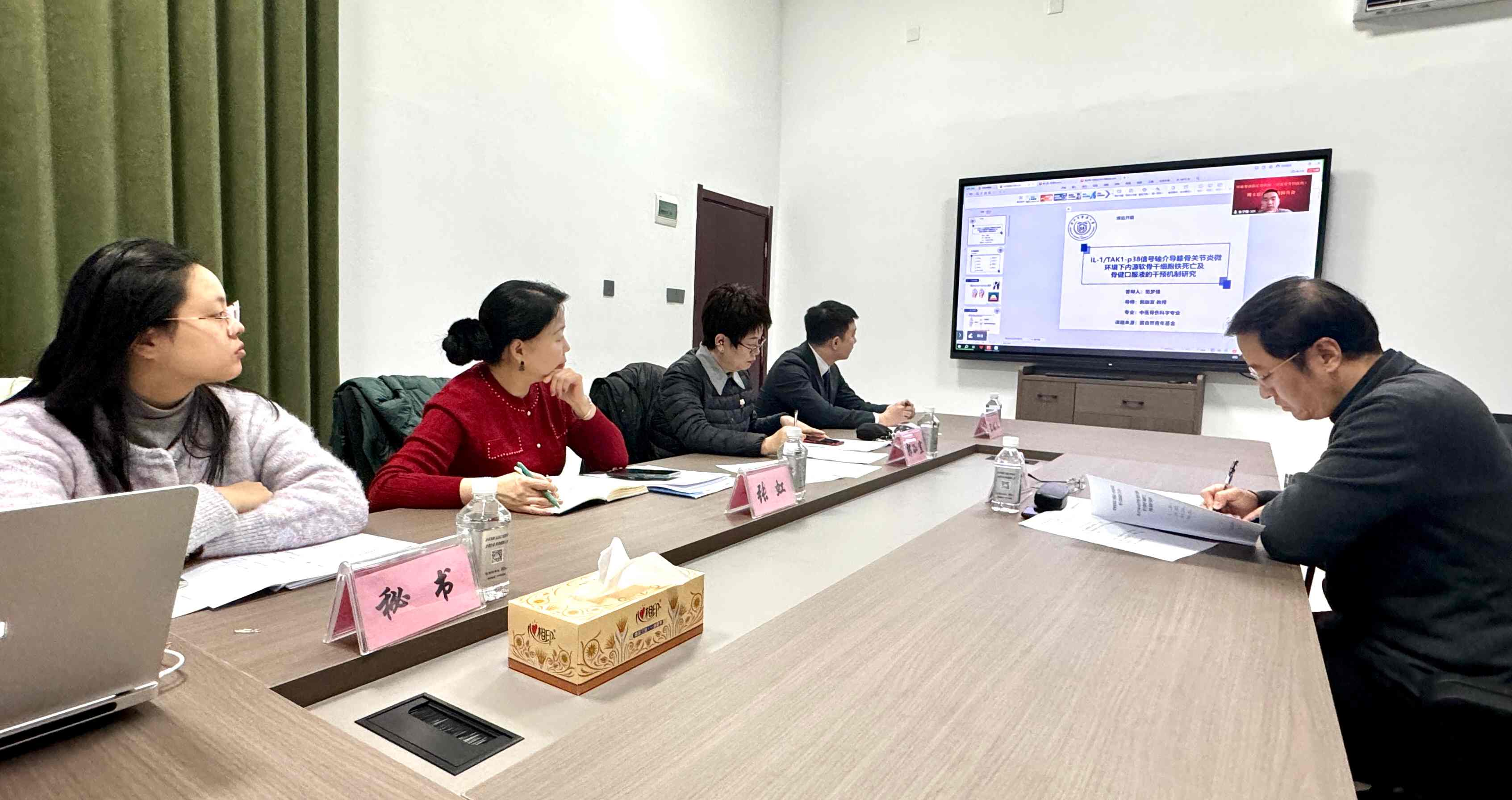 范梦强博士后目前就职于浙江省中医院,博士后指导老师是我院郭珈宜教授;周世博为我院轮转医师,博士后指导老师是我院赵明宇教授。出席报告会的评审专家有浙江中医药大学骨伤研究所副所长、青年岐黄学者金红婷教授,国家骨科与运动康复临床医学研究中心管理中心副主任李建涛教授、临床研究部主任刘明丽教授、创新转化部副主任张子程教授,以及我院王智勇教授。科研学科办主任张虹主持会议,侯梦晗担任报告会秘书。