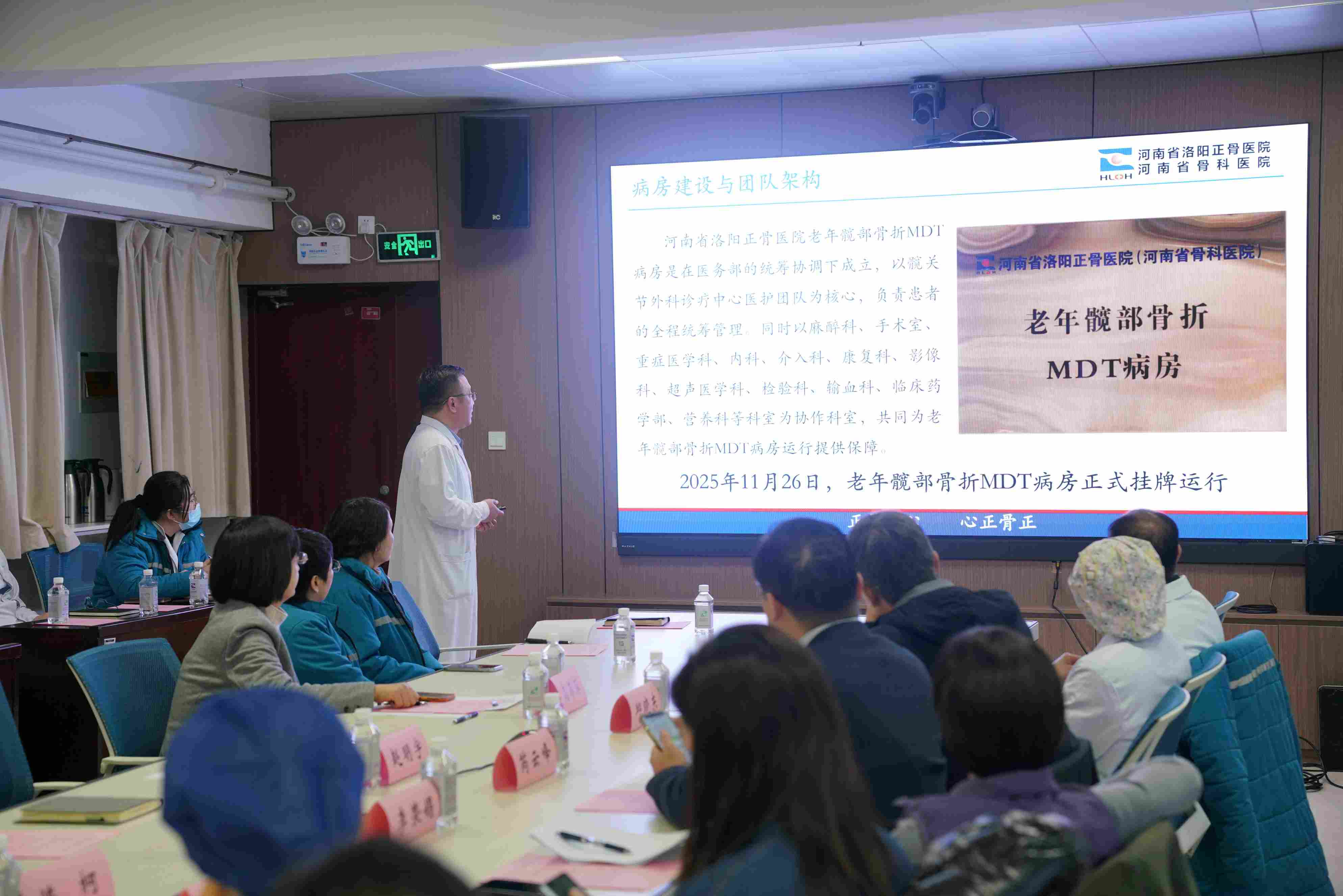 为持续深化老年髋部骨折多学科诊疗(MDT)模式建设,推动诊疗流程标准化、规范化发展,2026年1月30日-31日,我院医务部联合老年髋部骨折MDT协作组,特邀东南大学医学院院长助理、东南大学附属中大医院创伤救治中心主任芮云峰教授、麻醉科副主任邱晓东教授、老年病科副主任李荥娟教授、手术室护士长崔颖教授来院授课指导,并成功举办老年髋部骨折MDT病房高质量发展研讨会与“髋言相济,宁洛同行——洛阳?南京老年髋部骨折MDT学术沙龙”,为提升我院老年髋部骨折救治水平注入新动力。
