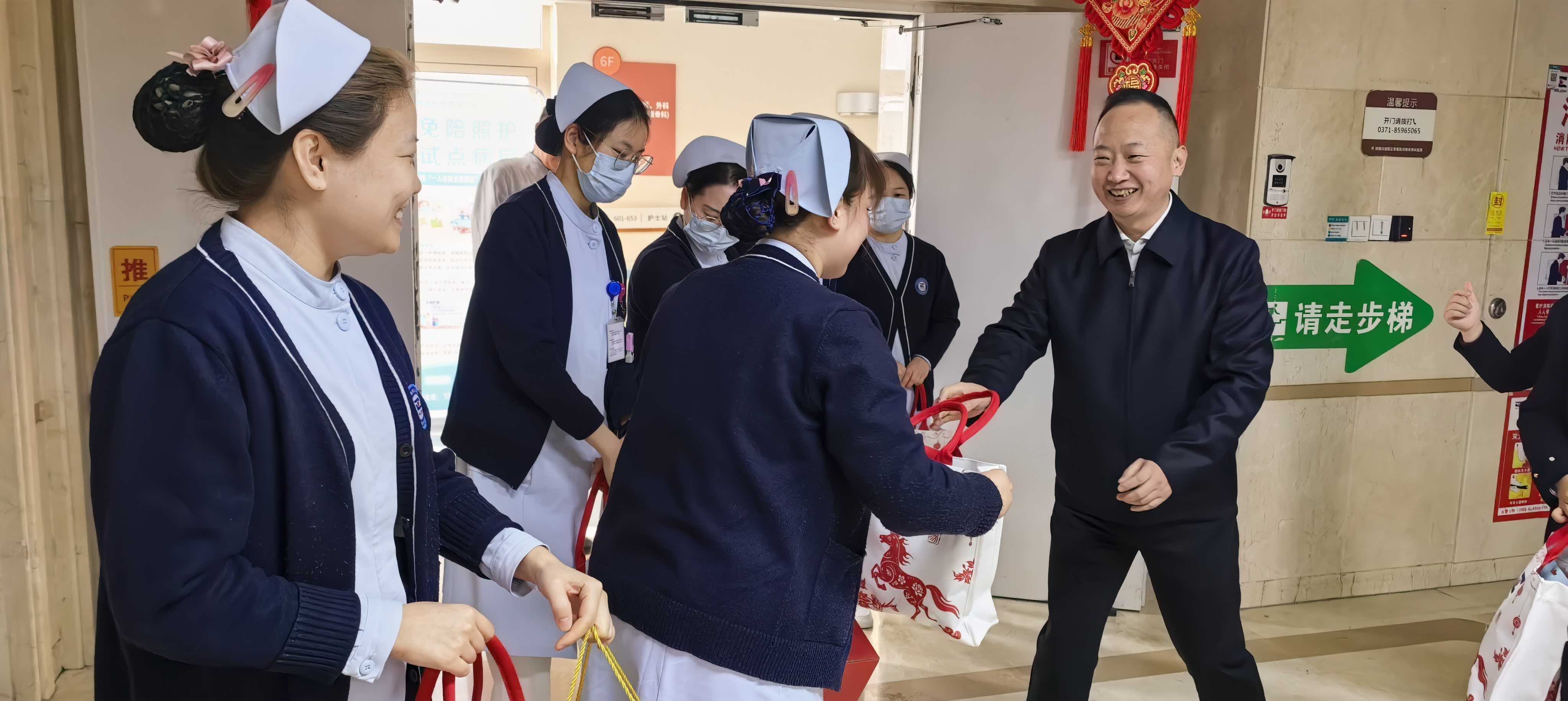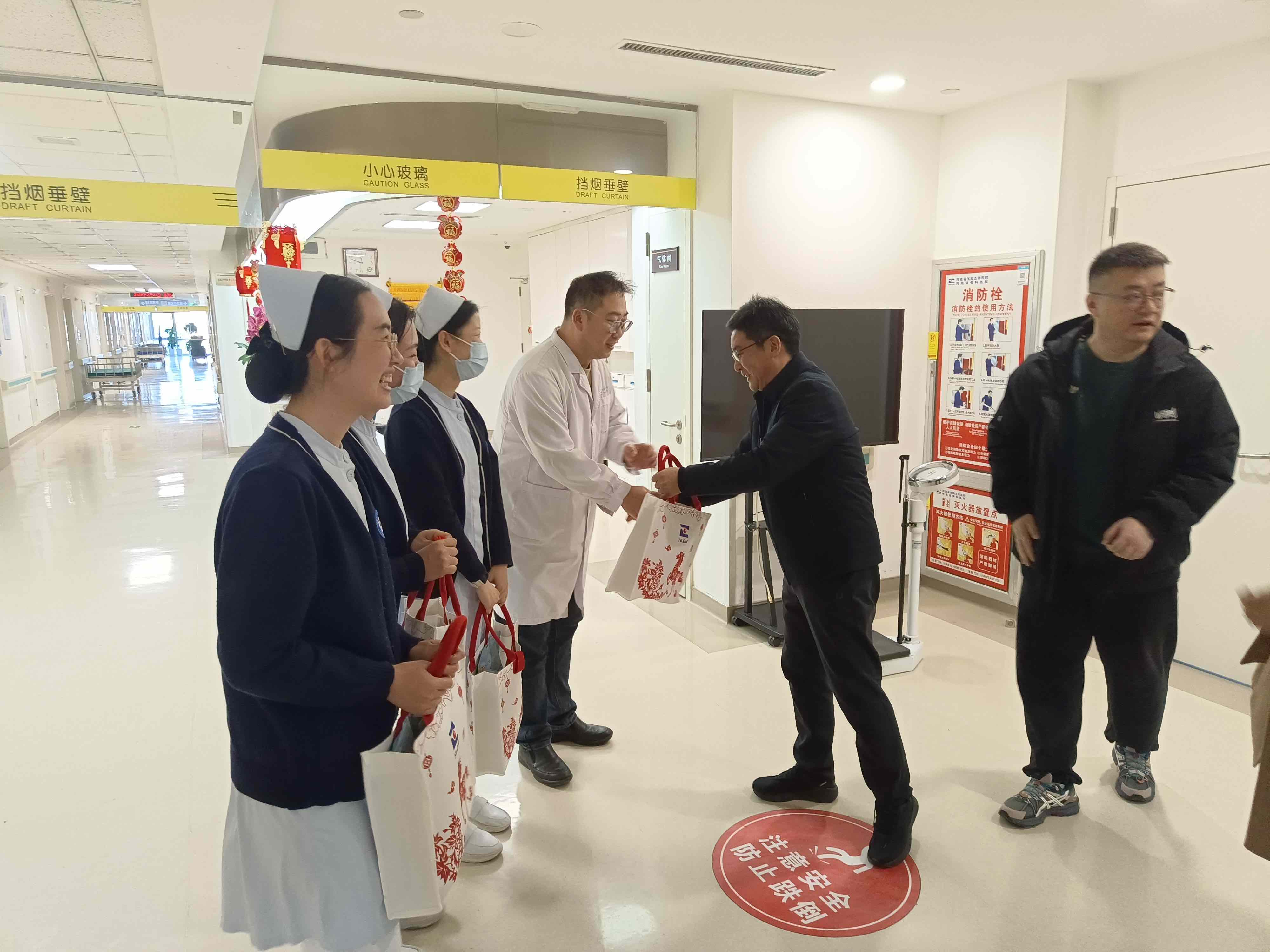 上午八点半,医院党委书记、院长吴晓龙,副院长赵明宇,纪委书记陈召起,赵长军同志带领相关职能部门负责人,分组深入洛阳院区、郑州院区、康复院区及开元门诊部等各院区各科室,向坚守岗位的医护人员送上节日的问候与新春礼包。