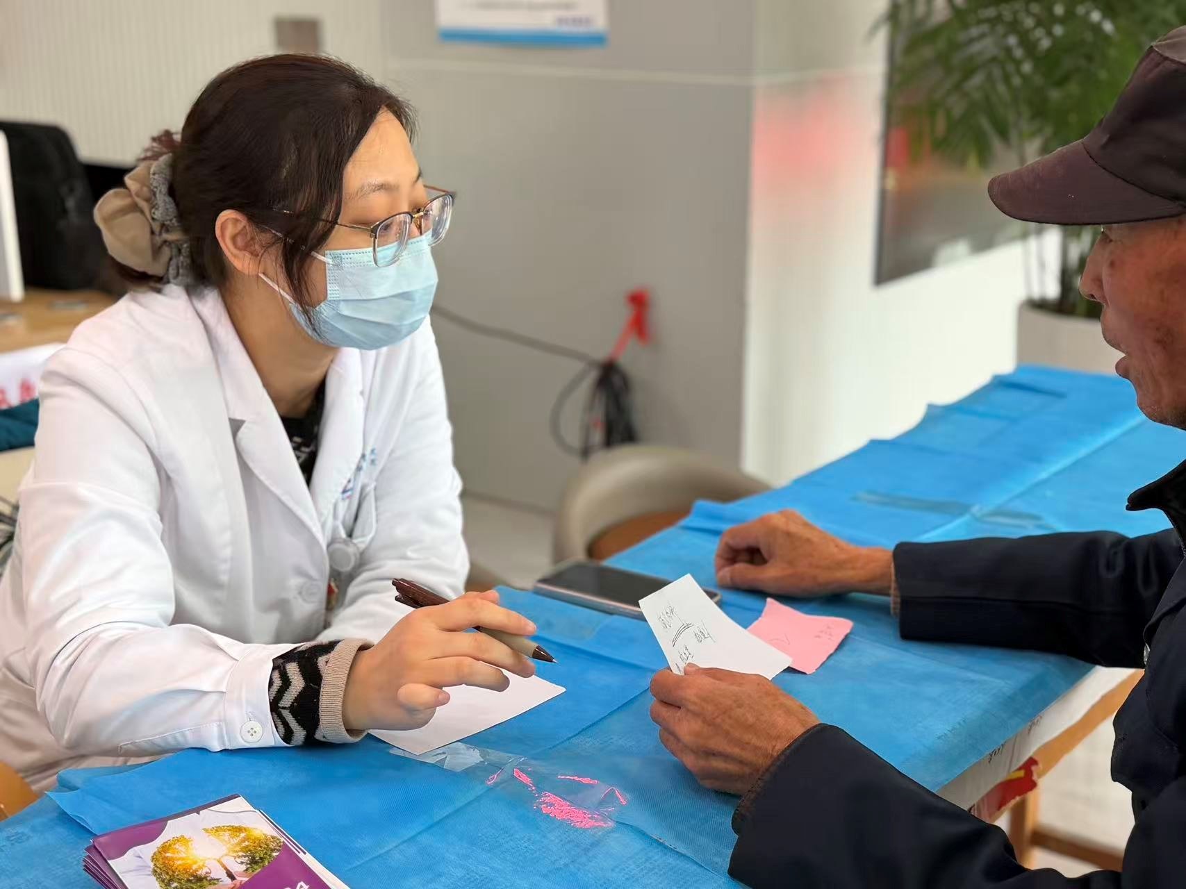 时值春季,也是呼吸道疾病的高发期。此次义诊特别融入了“结核病防治”常识宣讲环节。志愿者通过发放科普手册,感控科孙钰铭用PPT现场讲解,向居民普及结核病的传播途径、主要症状及国家免费治疗政策,提醒大家出现咳嗽、咳痰两周以上等可疑症状要及时就医,做到“防患于未然”。