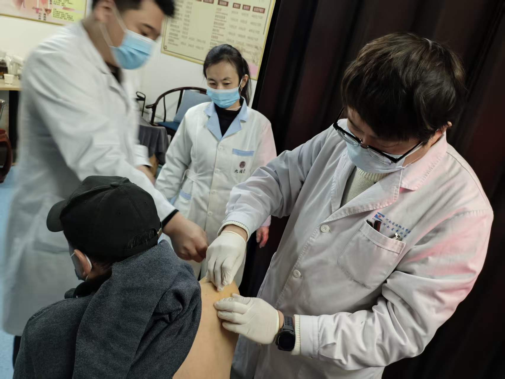 春风送暖,医者仁心。义诊现场,前来就诊的患者络绎不绝,夏厚纲主任团队认真细致地询问患者病情症状并检查病痛部位,根据自己多年中医经验,四诊合参,对于患者所关心的问题均给与耐心解答,后凭借丰富的临床经验,给予患者科学化的治疗建议和锻炼方法,对长期受病痛困扰的患者,夏厚纲团队予以小针刀对症处理,快速消痛,努力帮助他们早日恢复健康。