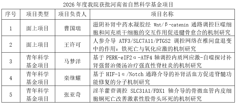 近日,河南省科学技术厅正式下达了河南省2026年科技发展计划(豫科【2026】20号),我院共获批项目14项,共获得财政经费支持150万元。