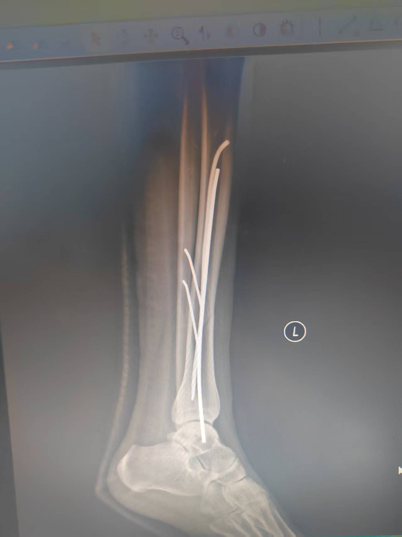 伤后第三天,通过他人介绍,为了少留疤痕,艾女士克服种种困难,忍痛赶来河南洛阳,找到我院洛阳院区手法正骨(微创正骨)二科主诊医师薛继强。薛继强接诊后,完善术前检查,排除下肢深静脉血栓等手术禁忌症后,为其量身定制了“经皮钳夹复位闭合穿针固定术”,手术用时半小时左右,利用付氏钳、点式复位钳纠正骨折位移,达到了解剖复位,利用克氏针和弹性髓内针进行稳固支撑与防旋转固定,确保骨折部位稳定,皮肤上仅有几个针眼,满足了患者和家人的愿望。