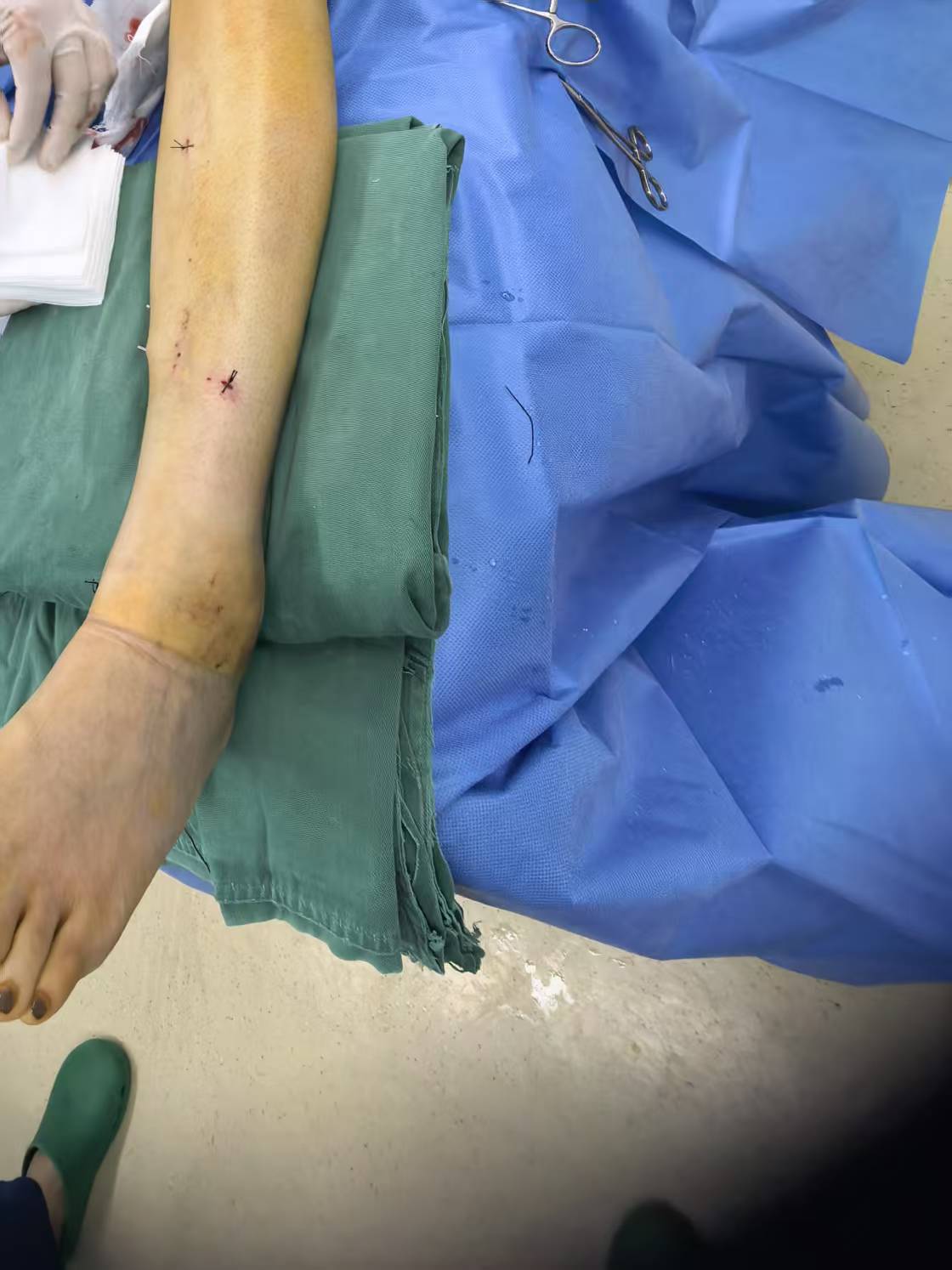 27岁的艾女士是一家航空公司的空乘人员,3月初在海南机场意外摔伤,就近拍片提示“左胫骨螺旋形骨折合并后踝无移位骨折”,也就是“张-侯氏骨折”。螺旋形骨折极不稳定,保守治疗骨折容易再移位,常用的治疗方法是钢板、螺钉内固定术或闭合复位交锁髓内钉内固定术,但是特殊的职业对于皮肤瘢痕有着苛刻的要求,治疗方案的选择和瘢痕的大小可能会影响职业生涯,艾女士和家人陷入了恐惧和焦虑之中:一方面担心保守治疗影响功能,落下后遗症,另一方面又担心手术瘢痕影响职业生涯。