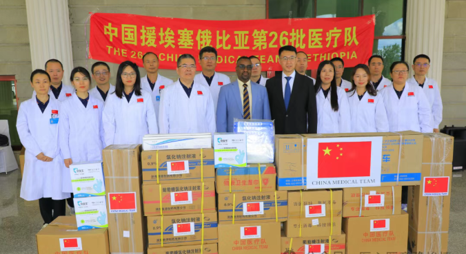 下午2:00,在季马大学主校区行政楼一层大厅,第26批援埃塞俄比亚中国医疗队开展了医疗物资捐赠活动。此次捐赠将缓解当地药品及试剂持续短缺的难题,有效助力提升诊断能力,提升医疗服务保障能力。