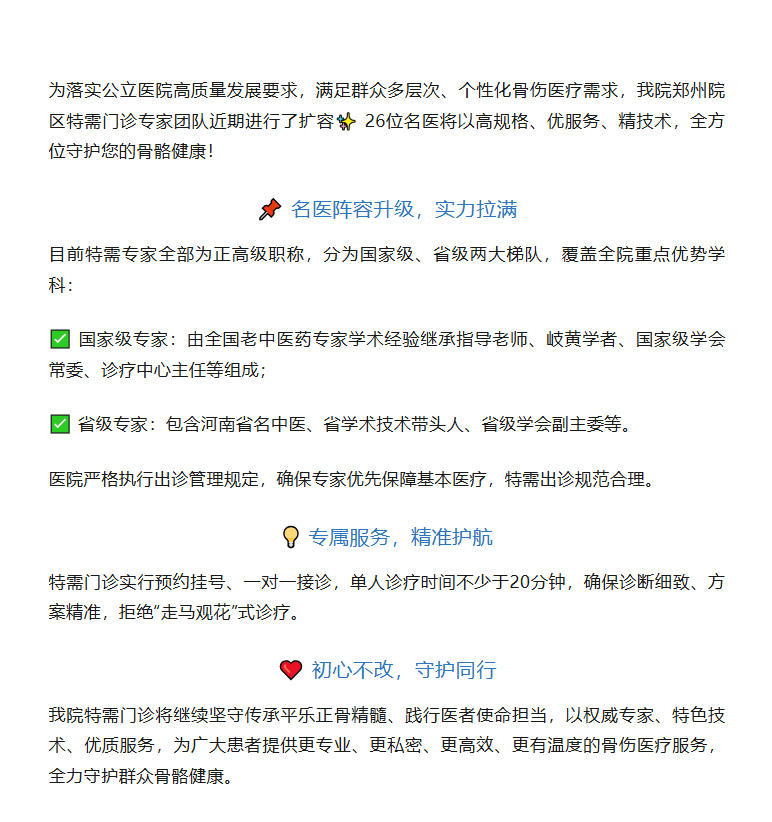 名医扩容_服务升级|河南省洛阳正骨医院特需门诊全新启航