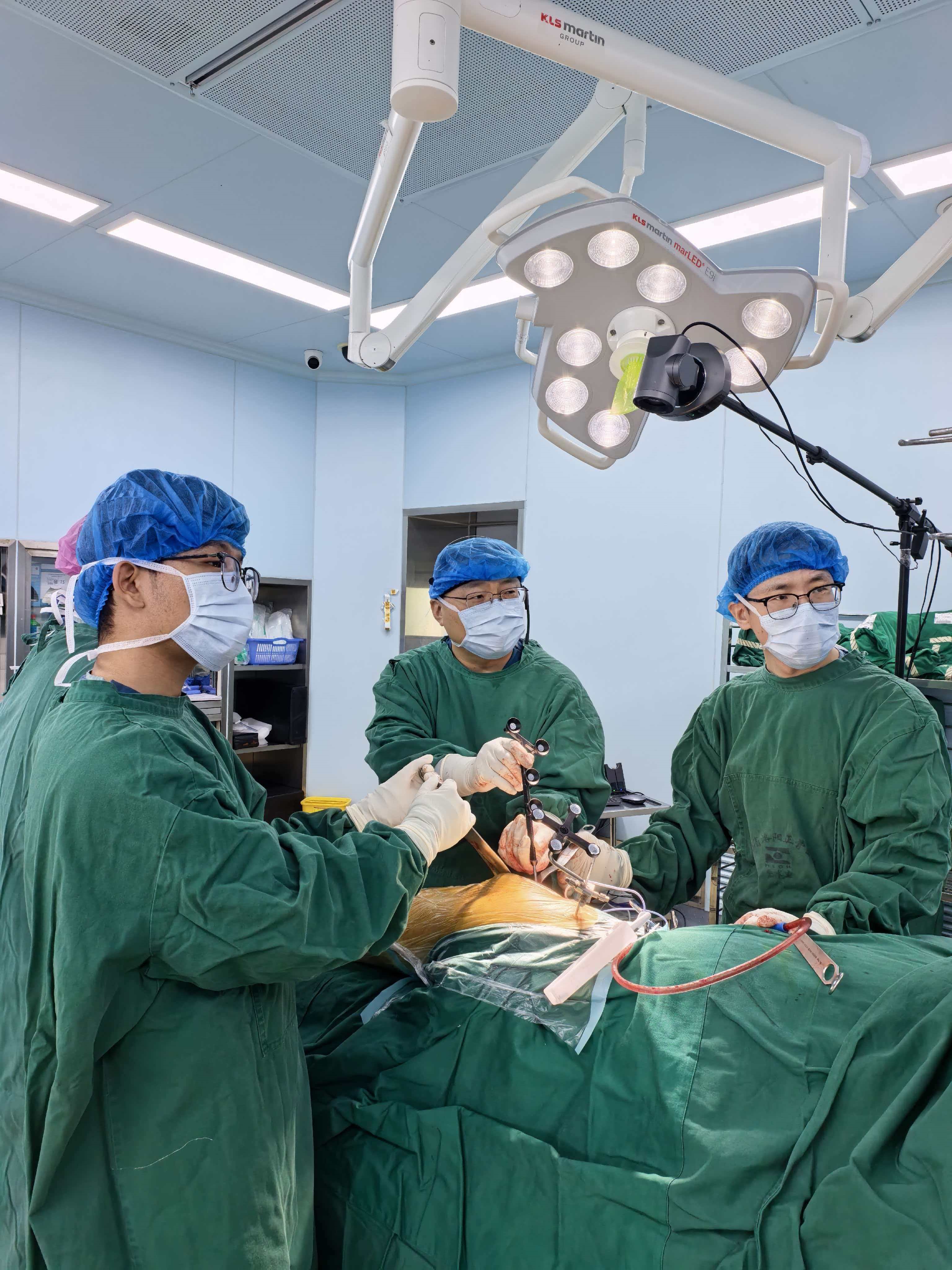 直播当天,倘艳锋团队带来的两例手术演示,均采用了直接前入路(DAA)全髋关节置换术,并创新性地将术中导航系统与3D打印截骨导板相结合,实现了手术的精准化、微创化、可视化操作。术中,倘艳锋团队凭借丰富的临床经验与精湛的手术技巧,结合数智化导航系统的实时定位、三维成像功能,对患者髋臼、股骨侧进行精准定位与规划,配合3D打印个性化股骨截骨导板,确保了假体植入角度、截骨长度的精准把控,实现了“毫米级”的手术精度,最大限度减少了手术创伤,缩短了患者术后康复周期。